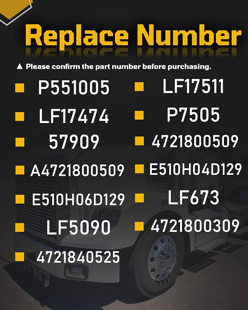 استبدال أرقام الأجزاء: LF17511، LF17474، P7505، 57909، 4721800509، A4721800509، E510H04D129، E510H06D129، P551005، LF673، LF5090، 4721800309، 4721840525، 472 184 0525، يرجى تأكيد رقم الجزء قبل الشراء.