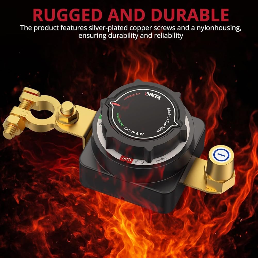 【مادة موصلة ممتازة】تم تصنيع مفتاح فصل بطارية السيارة هذا بغطاء من النايلون المقوى وأطراف نحاسية مطلية بالفضة. يضمن التصميم المقاوم للتآكل لمفتاح إيقاف البطارية هذا الحد الأدنى من المقاومة، وتوصيل أفضل، وعمر خدمة أطول مقارنة بالمفاتيح القياسية، حتى في البيئات القاسية.