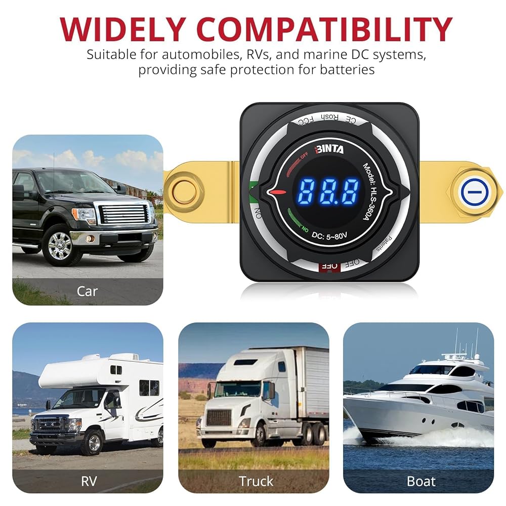【استخدام واسع】تم تصميم فصل البطارية هذا ليناسب التركيب الشامل عبر تطبيقات السيارات والمركبات الترفيهية والبحرية والقوارب والتخييم ومقطورة السفر والشاحنات. سواء كنت بحاجة إلى مفتاح بطارية رئيسي للاستخدام البحري أو قطع للخدمة الشاقة للمركبات على الطرق الوعرة، فإن تصميمه القوي يلبي جميع احتياجات عزل الطاقة لديك