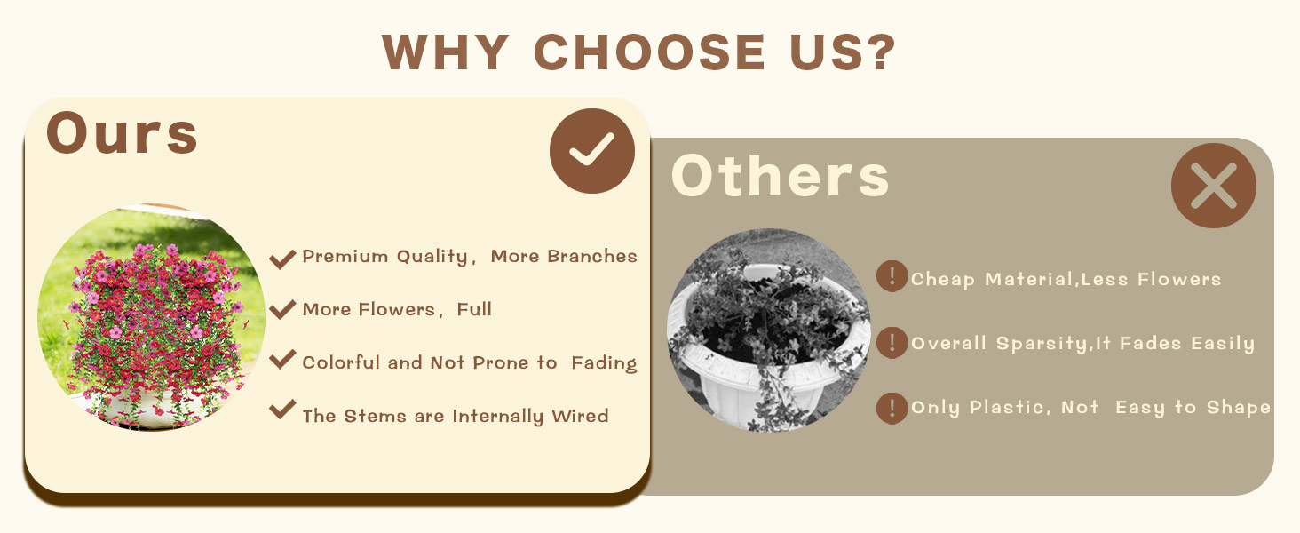 • ديكورات المنزل: نباتات صناعية خارجية جميلة مناسبة للمنزل والحديقة والشرفة والفناء وصندوق النوافذ والديكورات الداخلية والخارجية. يجلب الجمال لمنزلك.