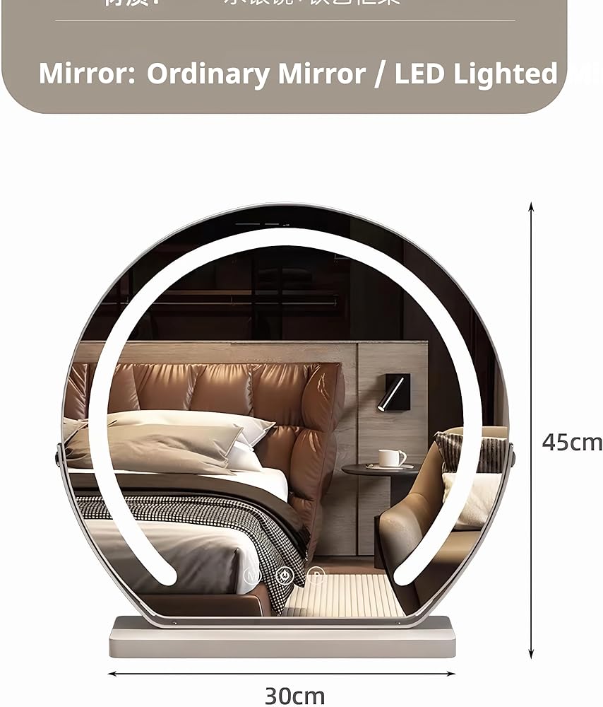 ✅ مرآة زينة صغيرة الحجم - بقياس 46.5 سم × 45 سم، مرآة الزينة الصغيرة المزودة بأضواء مثالية لغرفة النوم أو النوم أو طاولة الزينة أو غرفة الملابس. خيار هدية أنيق وعملي لأي شخص يحتاج إلى منضدة يمكن الاعتماد عليها مع مرآة وأضواء.
