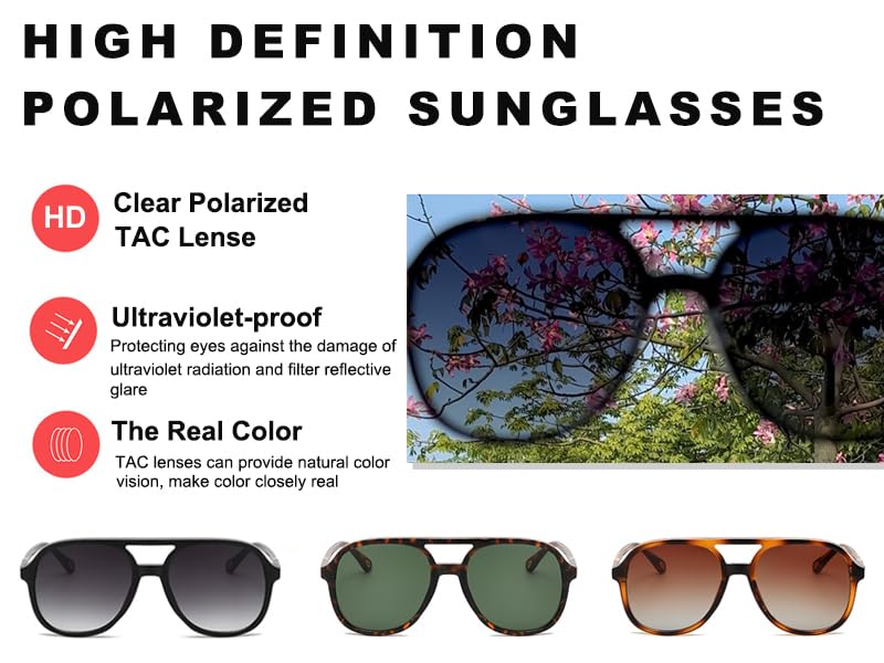 يمكن لعدسات TAC المستقطبة UV400 أن تحجب 99% من الأشعة فوق البنفسجية، وترشح الوهج العاكس وتقلل من إجهاد عينيك، إلى جانب توفير رؤية طبيعية عالية الدقة. هذه النظارات الشمسية المستقطبة مثالية للأنشطة الخارجية، مثل القيادة وصيد الأسماك والجولف والمشي لمسافات طويلة والشاطئ والجولات الصيفية...