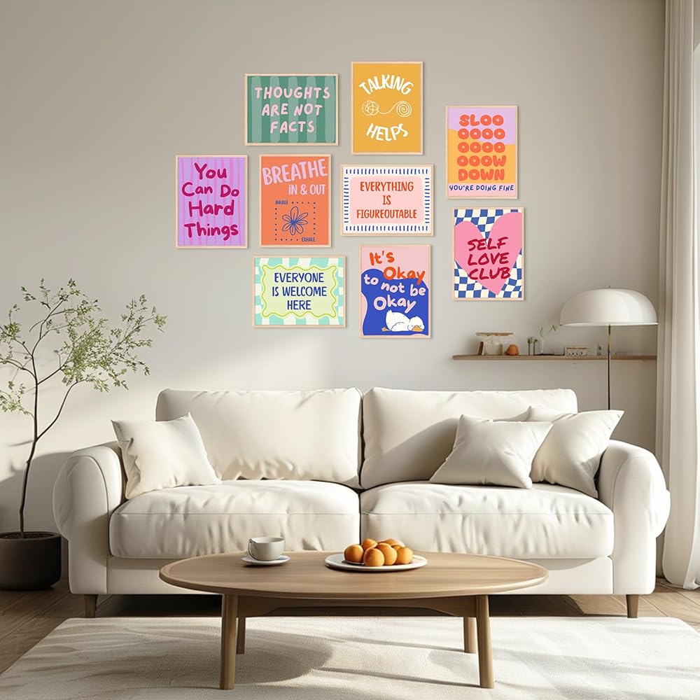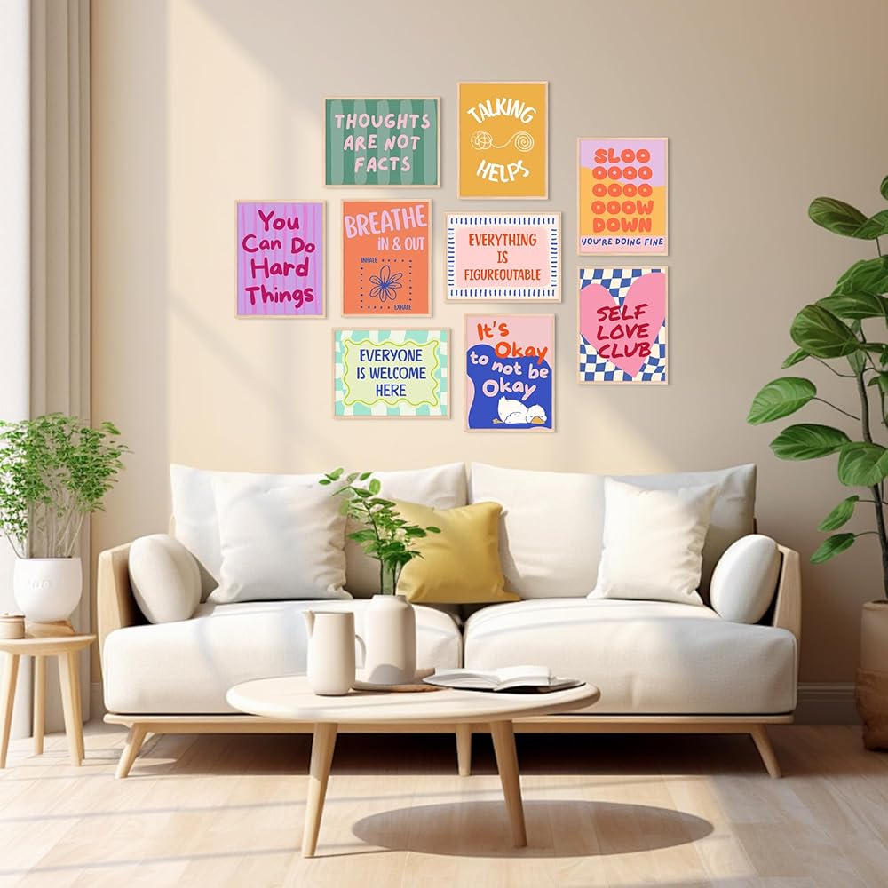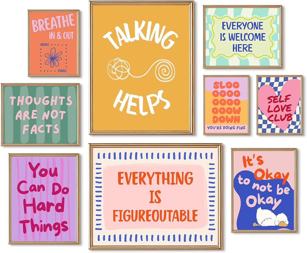• Mental Health Canvas Wall Art: Mental Health Canvas painting set size: 12*16 inches (30*40 cm) * 9 pieces, we have different styles and sizes for you to choose from to meet your needs and personal preferences. You can hang it anywhere you want, which will show your unique taste and personality and bring a new look to your living space.