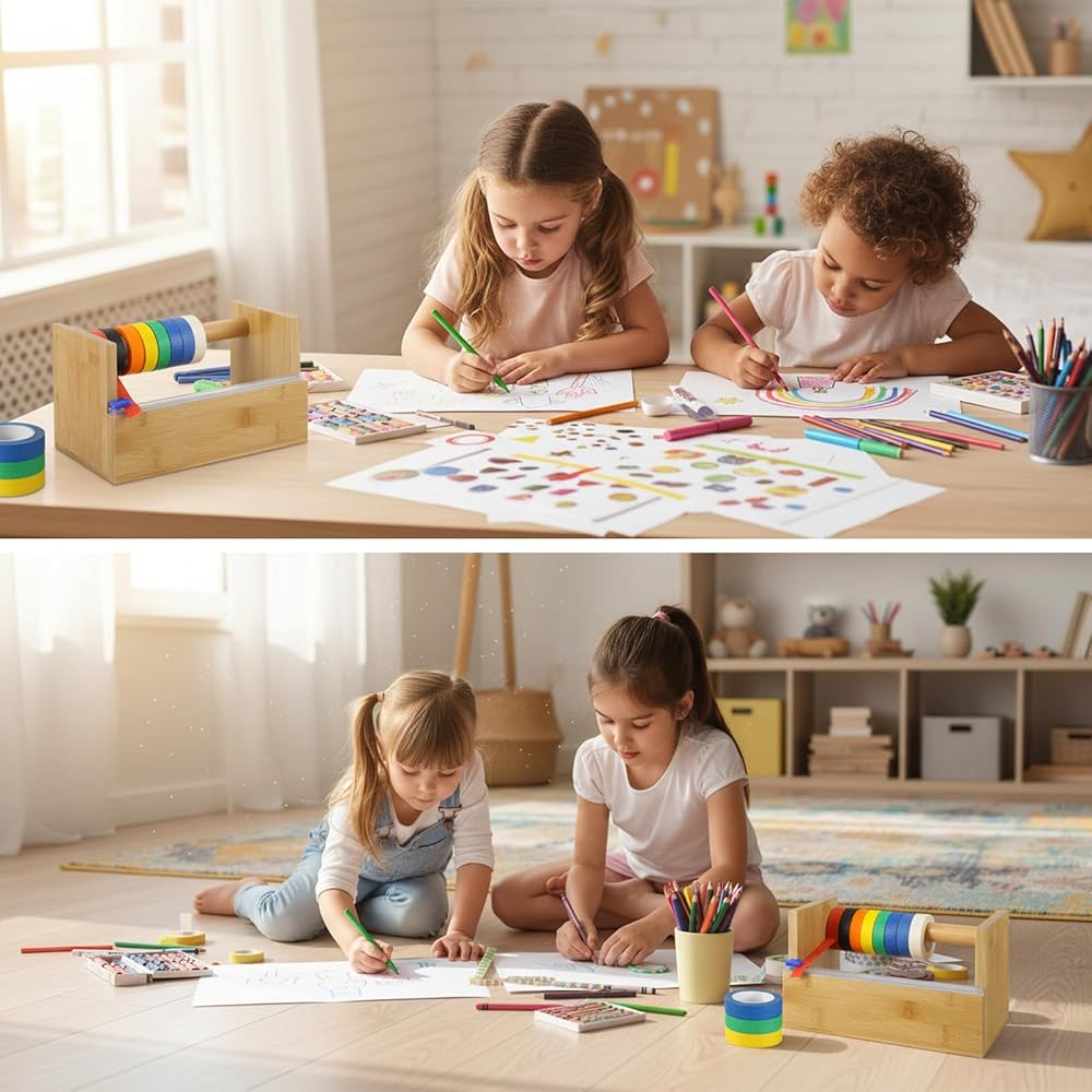 • Versatile Organizational Use:The product serves as a central organizer for tape rolls, functioning effectively in diverse settings. It is applicable as a kids craft organizer in homes, schools, or daycare centers, helping to teach organization skills. In office or studio environments, it acts as a desktop tape holder, keeping frequently used tapes neat and accessible.
