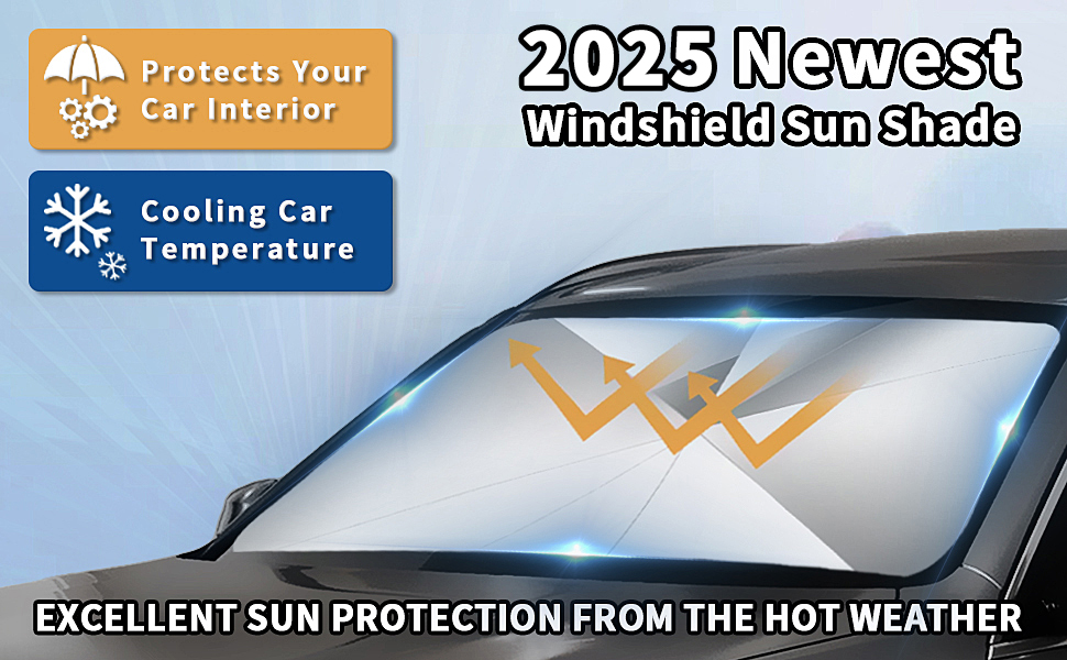 【حماية فعالة من أشعة الشمس】مظلة الزجاج الأمامي للسيارة مصنوعة من مواد عاكسة عالية الجودة توفر حماية ممتازة ضد أشعة الشمس والحرارة والأشعة فوق البنفسجية، مما يحافظ على برودة سيارتك بالداخل وتوفر تجربة قيادة مريحة حتى في أيام الصيف الحارة. يمكن لمظلة الزجاج الأمامي للسيارة أن تحجب ما يصل إلى 99.9% من الأشعة فوق البنفسجية الضارة وتحمي الجزء الداخلي لسيارتك من أضرار أشعة الشمس.