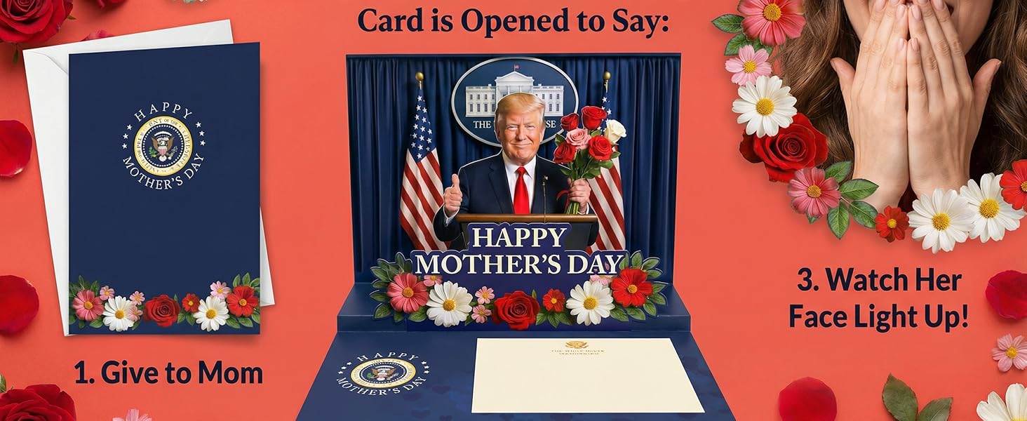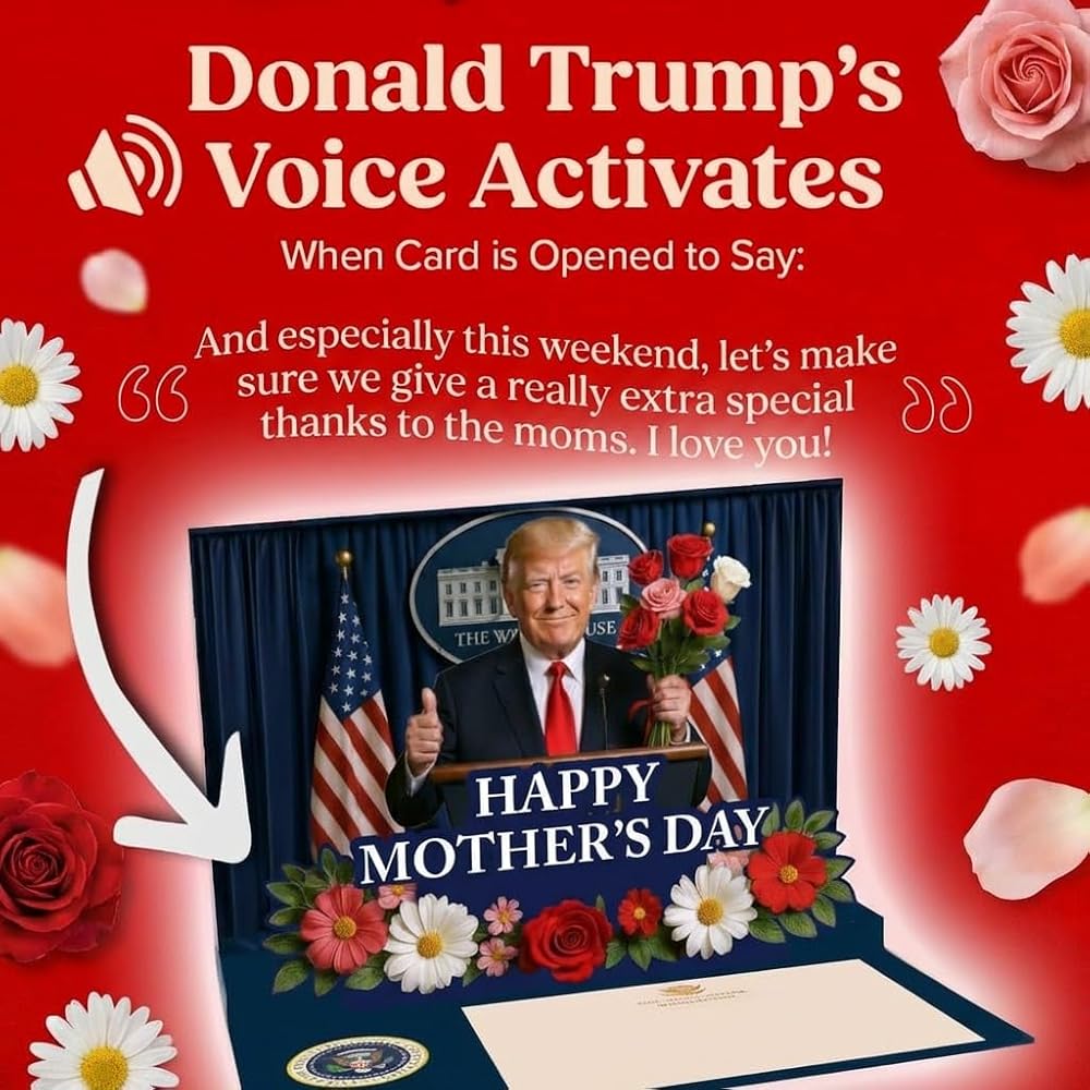 • يتم تشغيل صوت ترامب الحقيقي عند فتحه - افتح بطاقة التهنئة المنبثقة ثلاثية الأبعاد هذه وشاهد مشهد المنصة ينبض بالحياة بينما يقوم صوت ترامب بتوصيل رسالة عيد الأم القلبية إلى أمي تلقائيًا