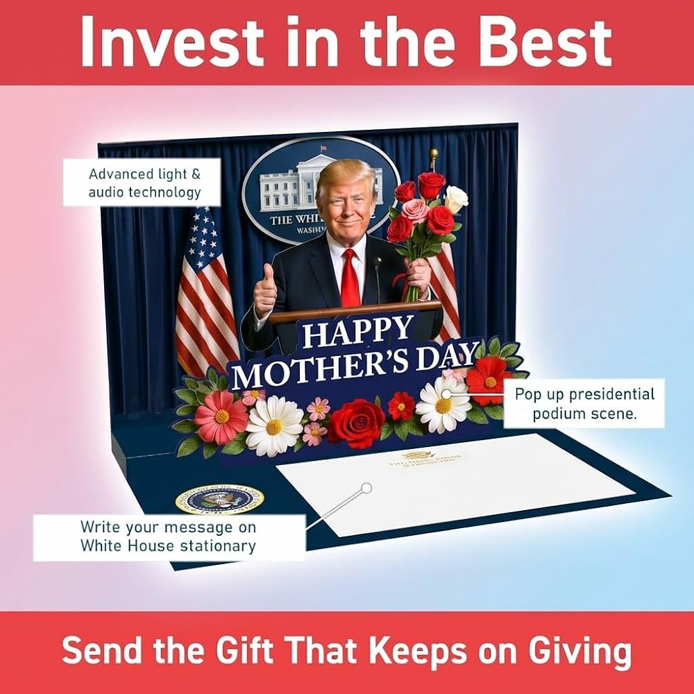بطاقة عيد الأم الناطقة من دونالد ترامب مع أضواء وصوت - تلعب صوت ترامب الحقيقي، بطاقة المنصة الرئاسية المضحكة ثلاثية الأبعاد - هدايا عيد الأم المبتكرة للأم من الابن أو الابنة أو الأب
