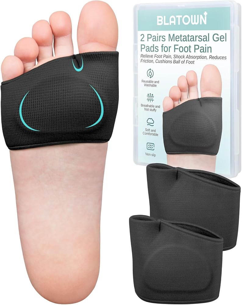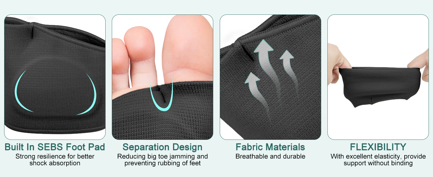 وسادات مشط القدم: يمكن لبادات مشط القدم للنساء والرجال الراحة الفورية وتخفيف آلام الأقدام المتعبة والمؤلمة. توفير توزيع الوزن وامتصاص الصدمات لتخفيف الضغط على مقدمة القدم. حماية السمسمويدات الهشة ومشط القدم من المزيد من الإصابات