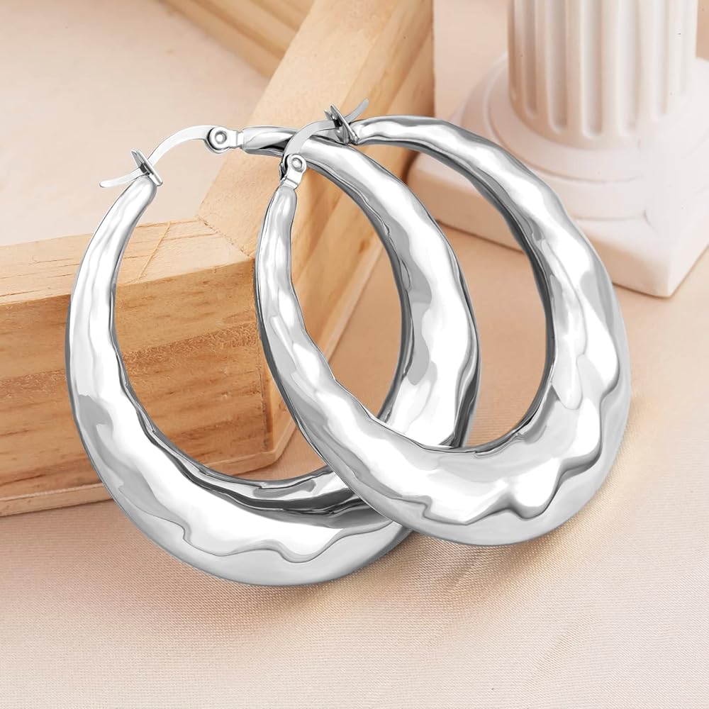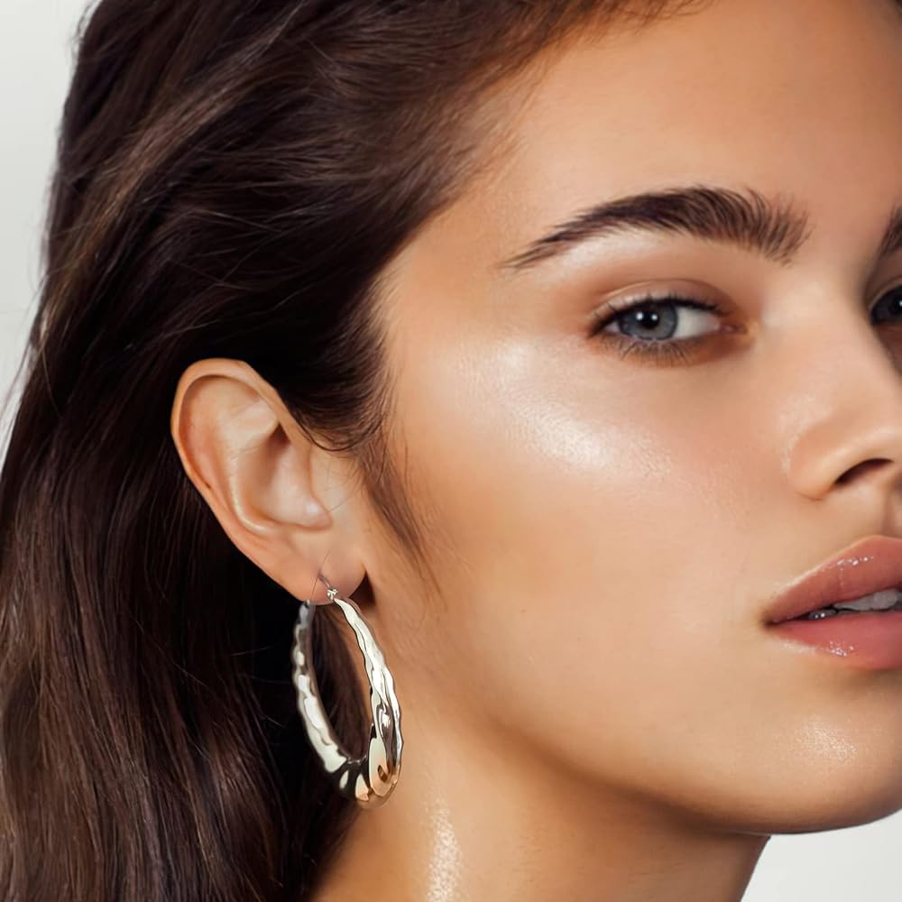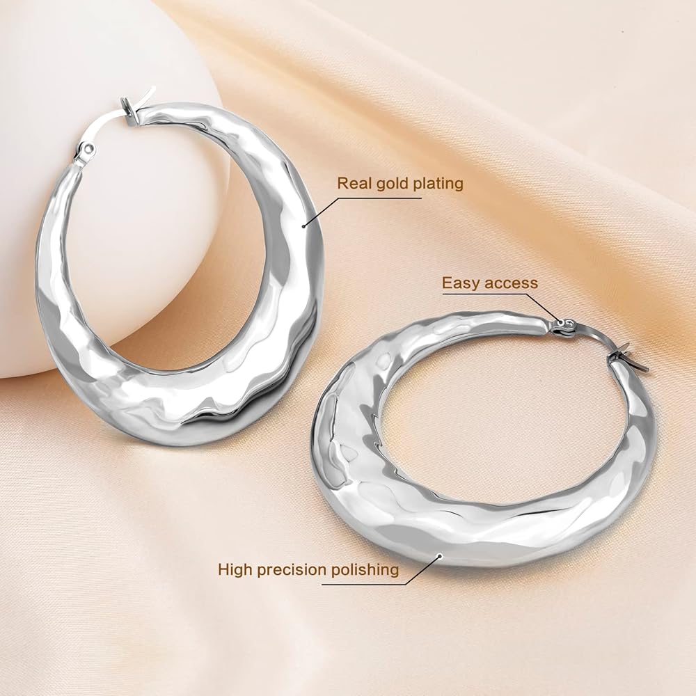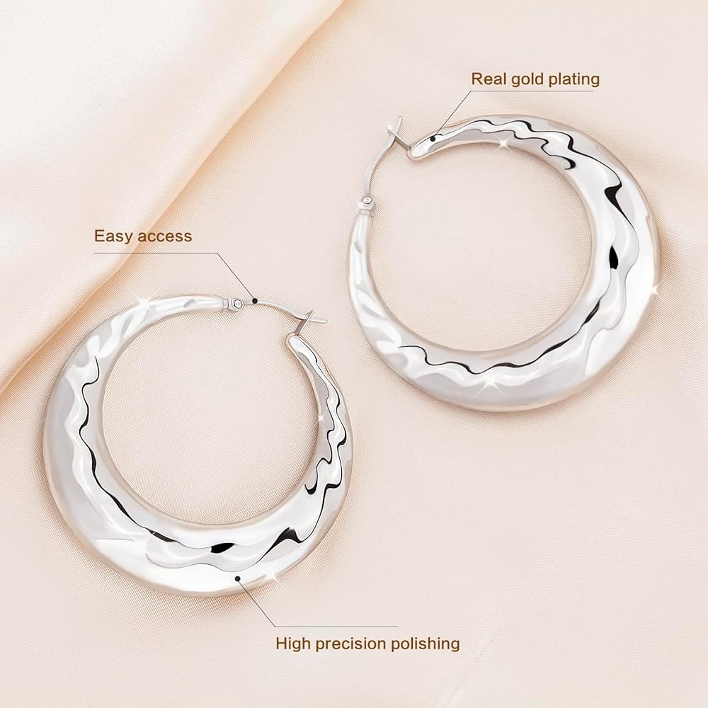 تصميم كلاسيكي بدائرة كبيرة: تتميز الأقراط بقطر خارجي يبلغ 1.9 بوصة (50 ملم). التصميم الكلاسيكي ذو الدائرة الكبيرة عصري وأنيق، ومناسب لمختلف أشكال الوجه.