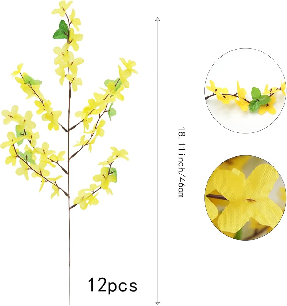 The height of forsythia artificial flowers is 46cm/18.11inch. Mix faux plant arrangement with other similar fake flower stems, can make a beautiful display, add color and natural sense to your home.