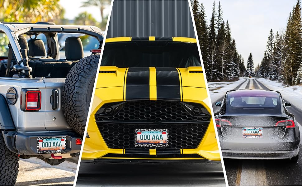• 【مفهوم طباعة ممتاز】استخدم الطباعة الرقمية المتقدمة لحماية إطارات لوحة الترخيص، سواء كان ذلك غسيل سيارة أو أمطار غزيرة أو طقس حار، فإنها لا تزال تبدو جديدة تمامًا، دع سيارتك تظل فريدة وأنيقة أثناء القيادة على الطريق.