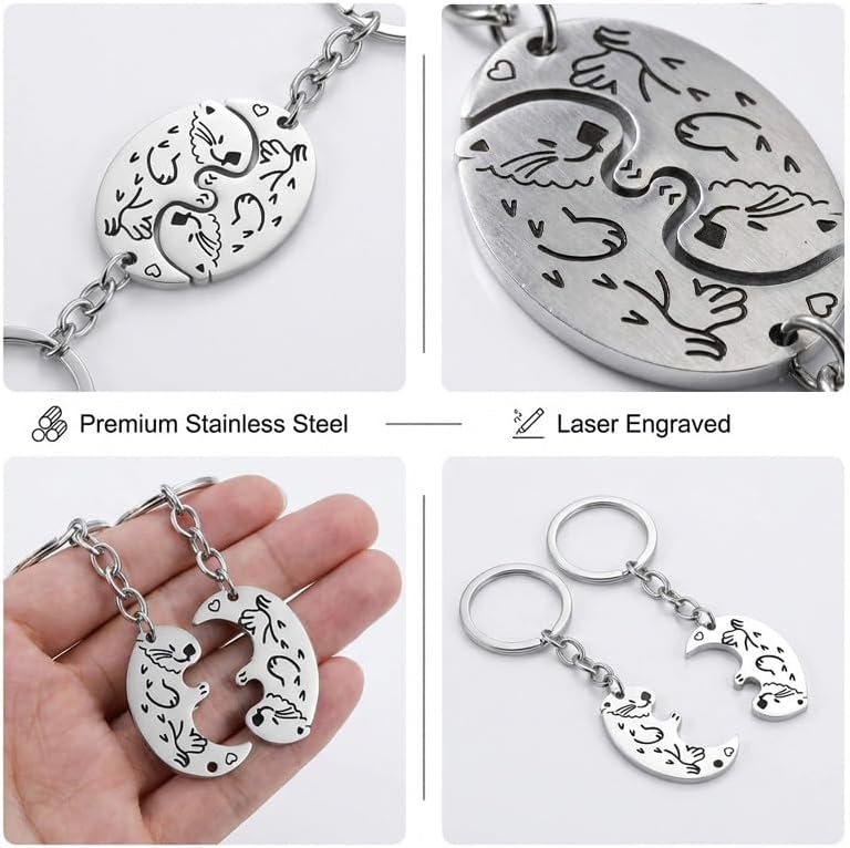 Matching Keychains for Couples: Features two adorable otter charms, when you connected these two otter keychains, they will fit perfectly, which symbolize love and friendship, perfect for expressing your bond with someone special