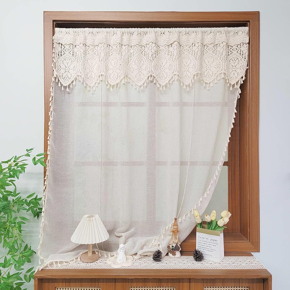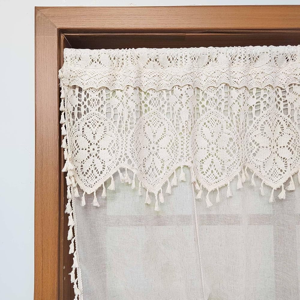 بوهو الكروشيه الدانتيل ربط الستار الستارة الشفافة للمطبخ ويندوز مكرامية رفع تول الطبقة الستار قابل للتعديل 2 طبقة تصفية الضوء شير الستارة قضيب جيب 1 لوحة (بيج، W35 L39 بوصة)