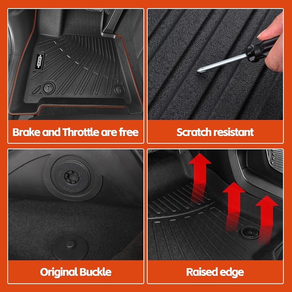 حماية من جميع الأحوال الجوية: مصممة لجميع المواسم، تتميز سجادات الأرضية هذه الخاصة بـ Highlander بحواف مطورة لحماية أرضياتك بشكل فعال من الغبار والطين والملح والمطر والثلج وحتى درجات حرارة الصيف. حافظ على أرضية سيارتك جيدة كالجديدة طوال الوقت. لا تنبعث منه روائح كريهة في الطقس الحار، مما يضمن أن الجميع يمكنهم استخدامه بكل راحة