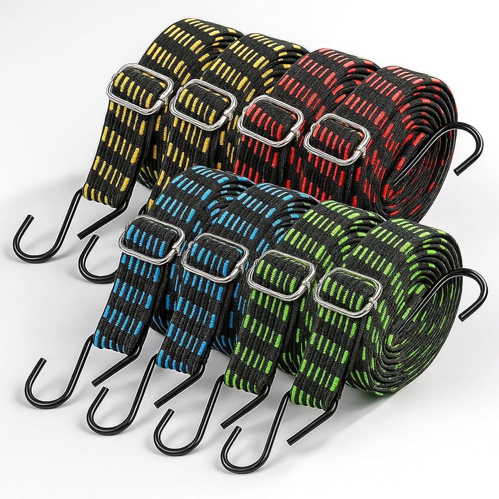 • Heavy-Duty Performance Features: Designed with robust metal hooks and adjustable buckles that withstand substantial weight and repeated use. The reinforced stitching throughout each cord ensures exceptional tear resistance, while the wide flat profile enhances grip stability and prevents damage to secured items during transportation or storage.