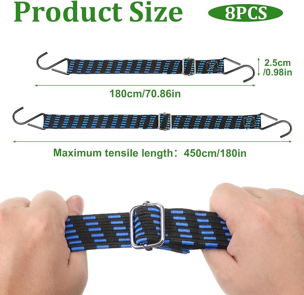 • Complete Set with Precise Specifications: This package includes 8 heavy-duty bungee cords featuring a 1-inch (25mm) flat width design. With original lengths ranging from 77-84 inches and stretch capacity up to 180 inches, these adjustable straps provide versatile sizing options for various securing applications while the generous quantity ensures multiple simultaneous uses.
