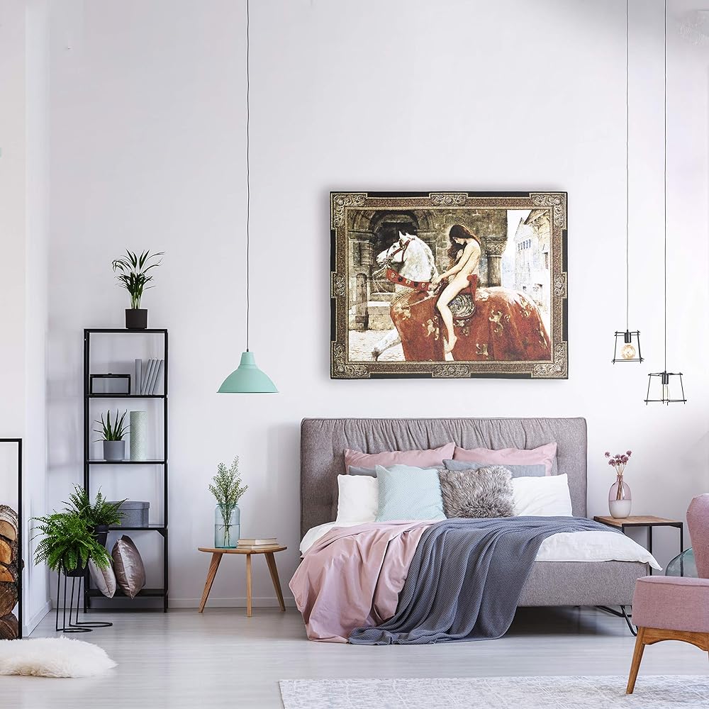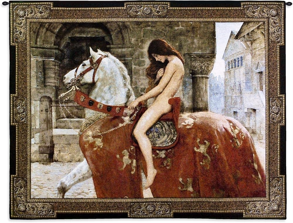 سيدة جوديفا بواسطة جون كولير | لوحة فنية جدارية منسوجة معلقة | أسطورة القرون الوسطى التصوير الفيكتوري | 100% قطن مقاس أمريكي 53x43