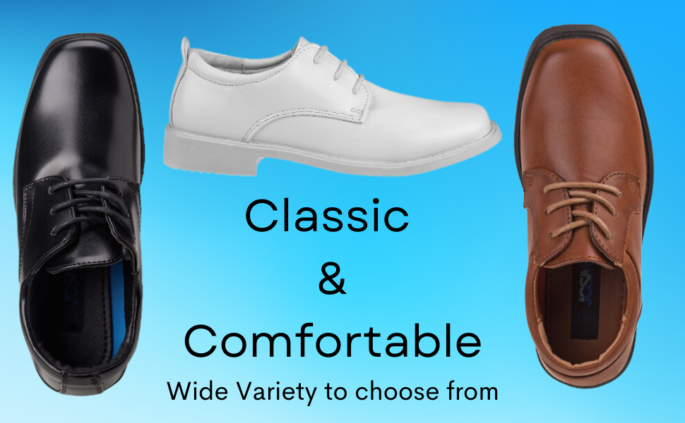 أحذية رسمية للأولاد من الجلد الصناعي بالكامل بنمط أكسفورد تضيف لمسة من الأناقة الكاجوال إلى أي ملابس.