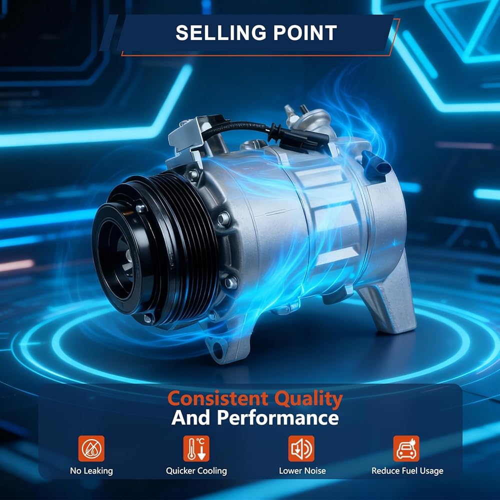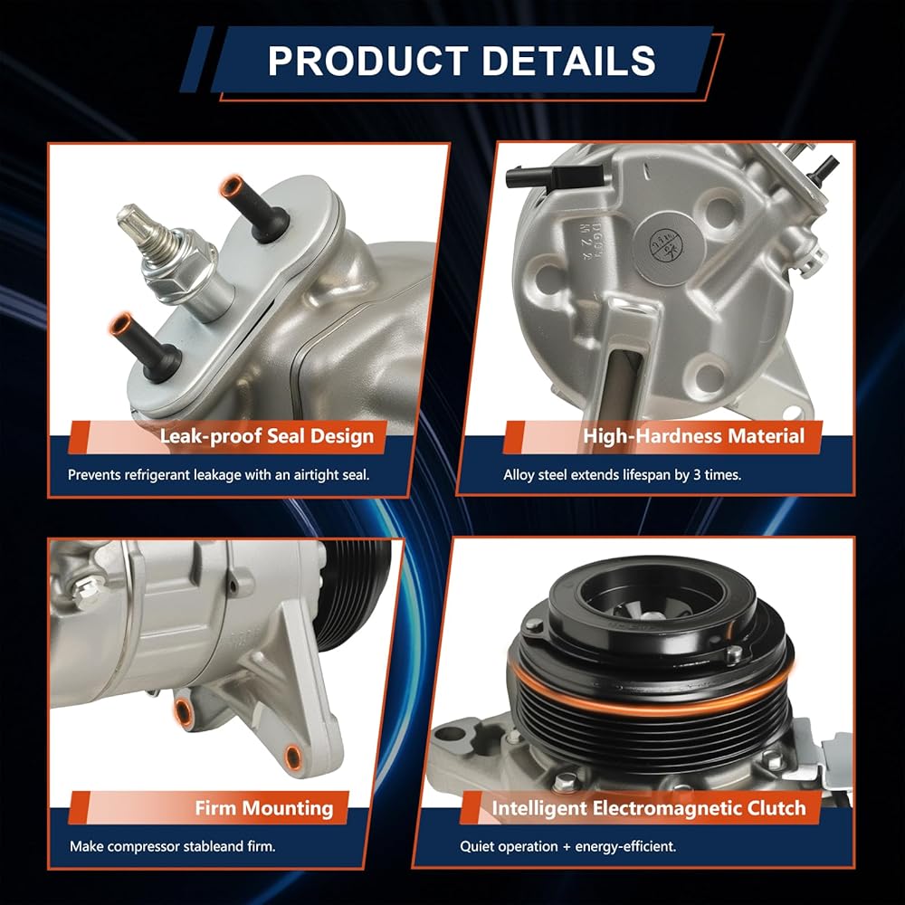 [فعال في استخدام الطاقة ومتين]: مصنوع من سبائك الألومنيوم عالية القوة، يعمل هذا الضاغط بأقل قدر من الضوضاء والاهتزاز من أجل تبريد موفر للطاقة. حافظ على سرعة قيادة ثابتة لتحسين كفاءة استهلاك الوقود. ويضمن هيكلها القوي أداءً موثوقًا ومتانة ممتدة.