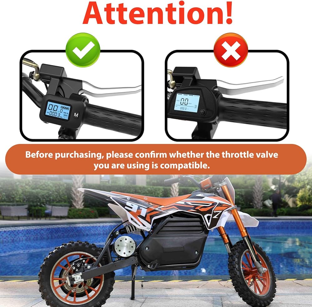 【Compatibility Information】This new throttle integrated display with M key is designed exclusively for the Tuttio Soleil 01 electric dirt bike; If your current throttle has an M bottom, you can use this product fits for Soleil 01. If not, do not purchase it!!