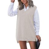 مطابقة: فستان فضفاض بدون أكمام برقبة على شكل حرف V للنساء، سترة طويلة أسفل الورك كفستان سترة، يتماشى جيدًا مع القميص الأساسي الأبيض أو السراويل الضيقة، الجينز، شورت رياضي، سهل الحصول على مظهر عصري