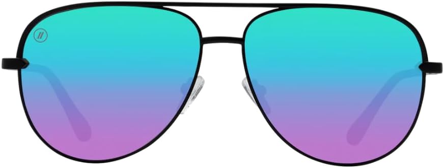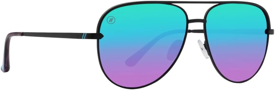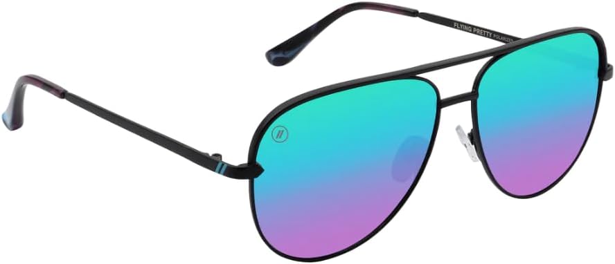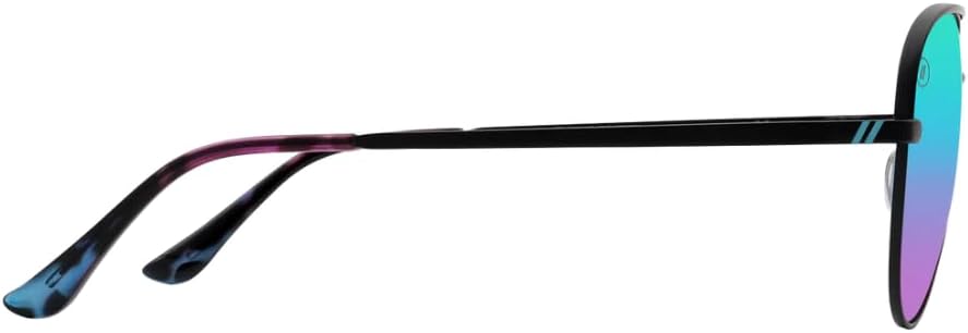 ‘Flying Pretty' is here to take your style higher. These black-framed aviator sunglasses flash with color thanks to a polarized gradient lens and tortoise-printed temple tips in purple and blue. It's a distinctive look courtesy of the fun, forward-thinking focus of our ‘Shadow' collection.