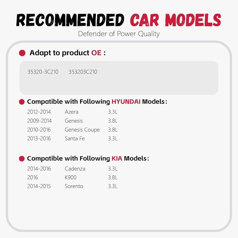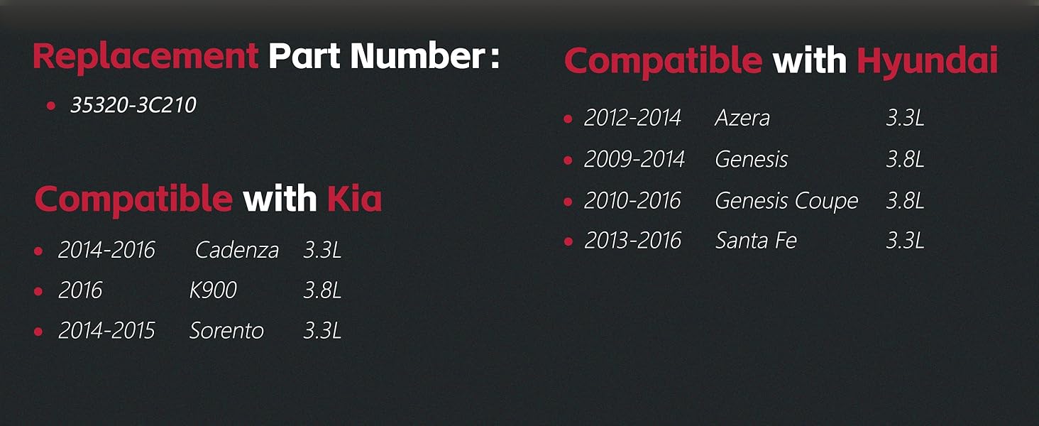 【نماذج المركبات المتوافقة】متوافقة مع Hyundai 12-14 Azera 3.3L 09-14 Genesis 3.8L 10-16 Genesis Coupe 3.8L 13-16 Santa Fe 3.3L