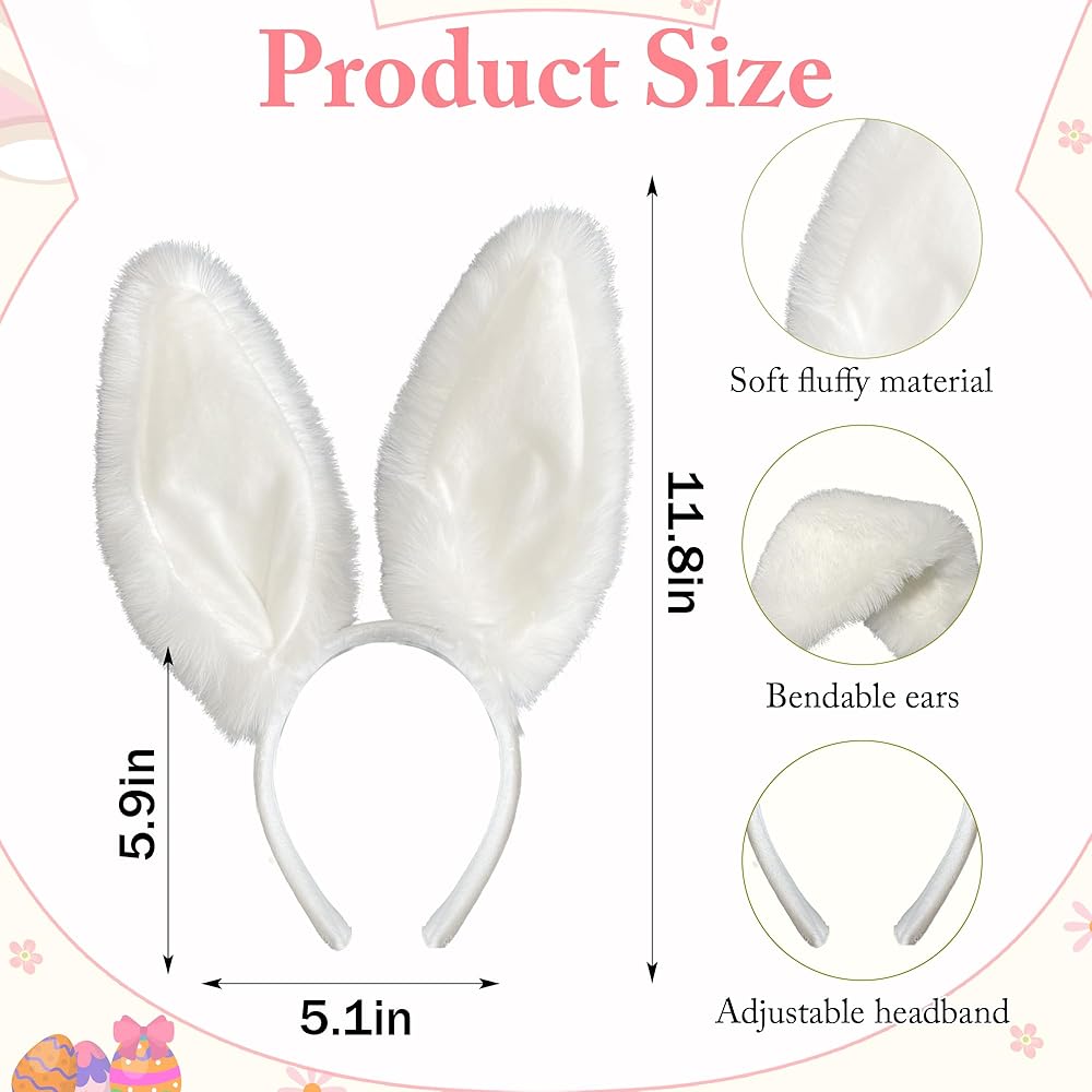 عصابة رأس قابلة للتعديل: مصممة بعصابة رأس قابلة للتعديل تناسب معظم أحجام الرأس بشكل مريح، مما يضمن بقاء آذان الأرنب في مكانها حتى أثناء اللعب النشط أو ساعات الحفلات الطويلة.