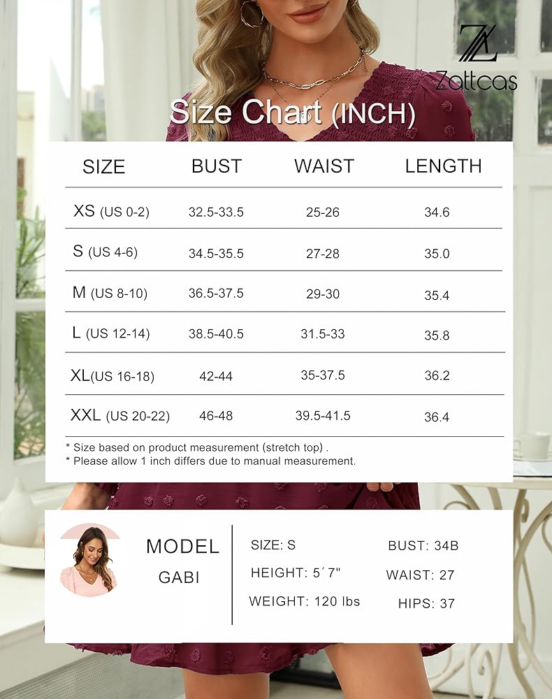 المقاس الحقيقي للولايات المتحدة: مقاس الصدر (قم بالقياس مع حمالة الصدر): صغير 34 بوصة (US4-6)، متوسط 36 بوصة (US8-10)، كبير 38 بوصة (US12-14)، X-Large41 بوصة (US16-18)، XX - كبير 44 بوصة (US20). طول الفستان من الكتف إلى الحاشية: XS--34.2 بوصة، S--34.6 بوصة، M--35 بوصة، L--35.4 بوصة، XL--35.8 بوصة، XXL--36.2 بوصة. طول العارضة 5 أقدام و7 بوصات و120 رطلًا، حمالة صدر 34B، مقاس أمريكي 4، ترتدي مقاس صغير. تبدو لطيفة جدًا عند ارتدائها مع أحذية عالية
