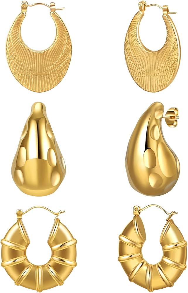 3 Pairs 18K Gold Plated Hoop Earrings Set for Women Hypoallergenic Chunky Trendy Gold Earrings for Women Jewelry