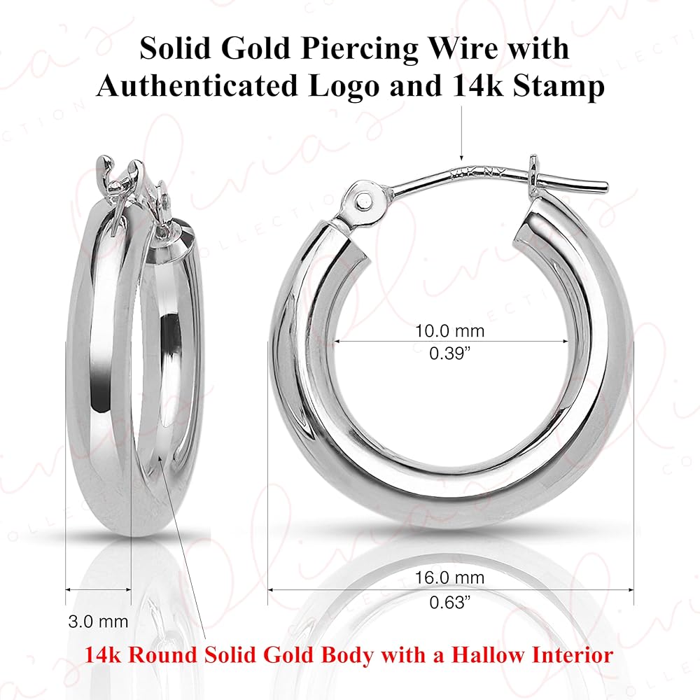 Crafted in 14k Gold. All our hoop earrings are brand new without tags with an Authenticated logo and stamp of 14k. We do not sell tarnished products like gold-filled, gold-plated, or vermeil.