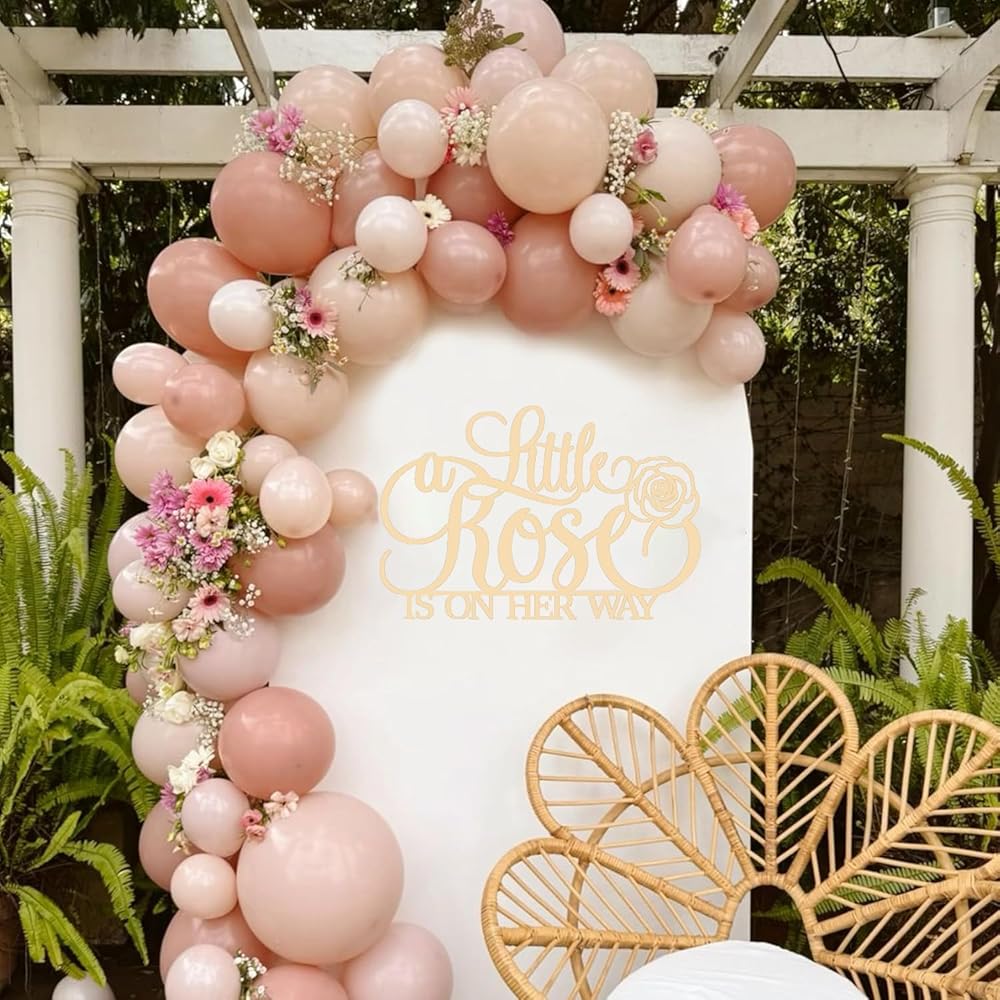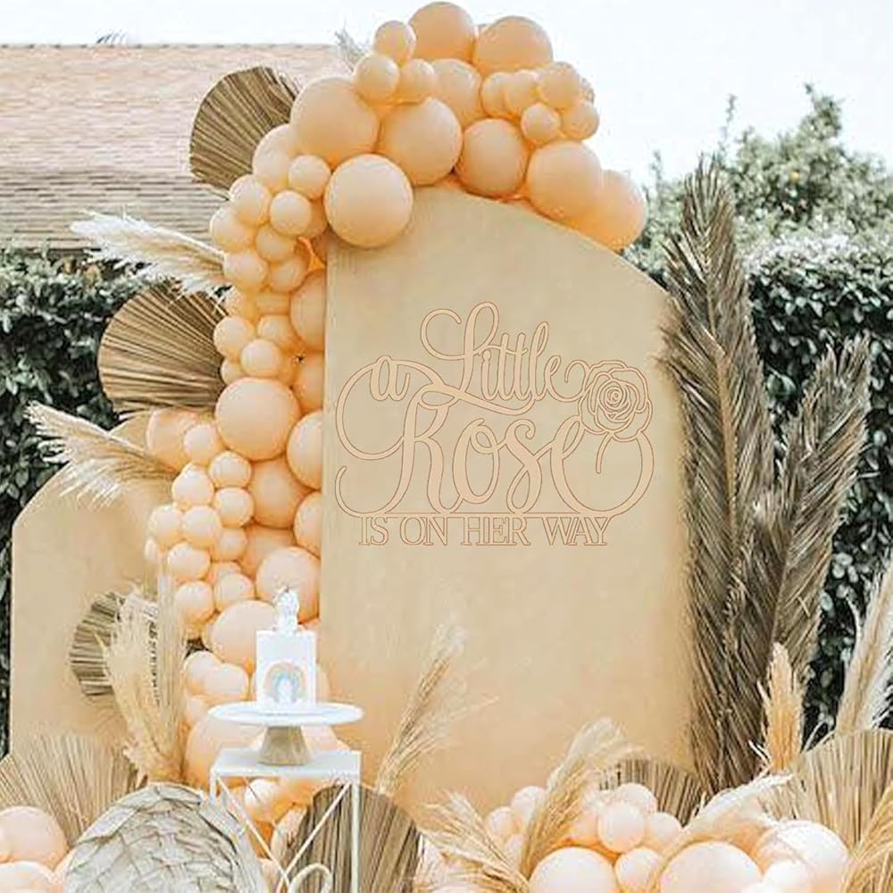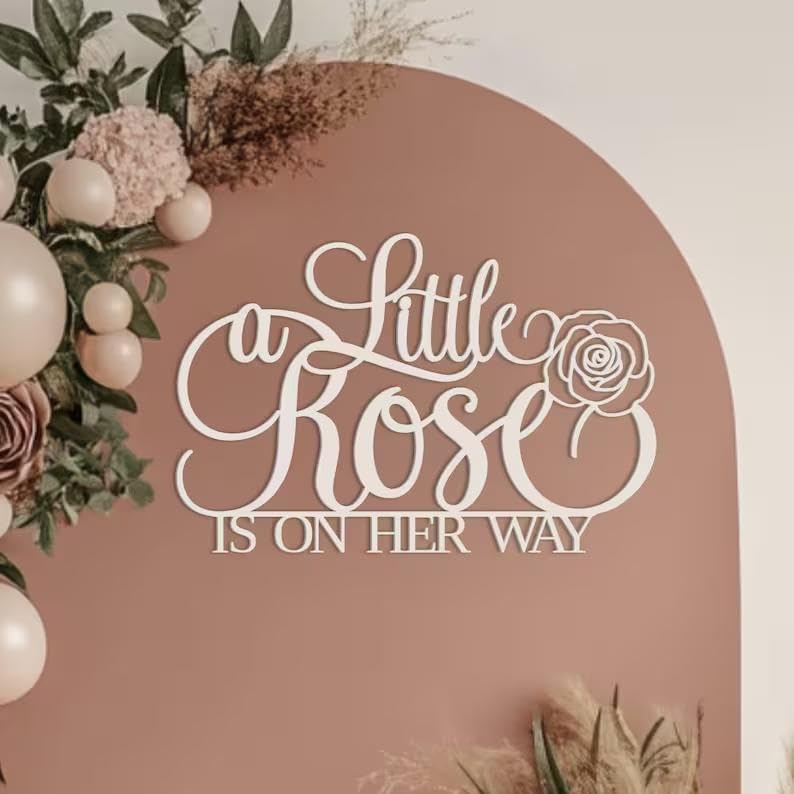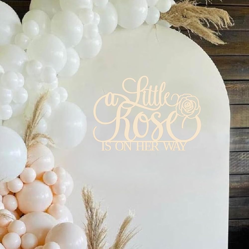 Transform your baby shower or first birthday celebration with this enchanting wooden sign featuring the delicate message 'A Little Rose is On Her Way.' Perfect for rose-themed parties, this elegant decorative piece adds a touch of whimsy and sophistication to your special occasion. The sign showcases beautiful typography with a charming rose detail, making it an ideal backdrop centerpiece for photos, dessert tables, or welcome areas. Crafted from wood with a professional finish, this sign coordinates beautifully with balloon arrangements, floral displays, and other party decorations. Its versatile design works wonderfully for both intimate gatherings and grand celebrations, creating a memorable focal point that sets the tone for your event. The soft, feminine design makes it especially suitable for girl-themed celebrations, while its high-quality construction ensures it can become a cherished keepsake after the festivities.