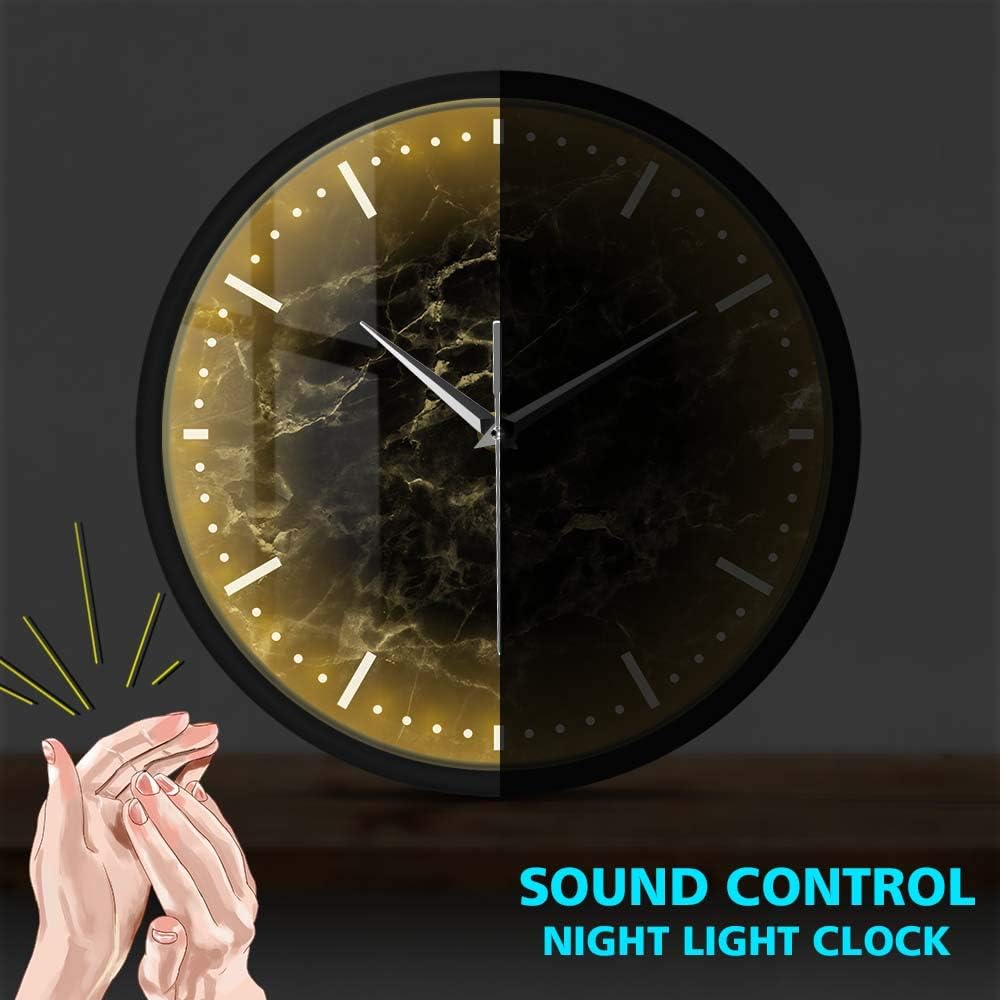 تنبيهات المهوس الحد الأدنى من الرخام الأسود التحكم الصوتي LED ضوء الليل ساعة الحائط الرخام الأسود إطار معدني صامت ساعة حديثة تعمل بالبطارية ساعة حائط فنية تجريدية