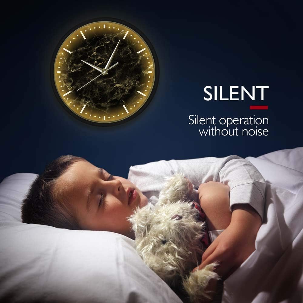 • Non-ticking wall clock: Ultra-quiet and night light function, Ultra-quiet and no ticking, quiet movement, no ticking to ensure a good sleep or work