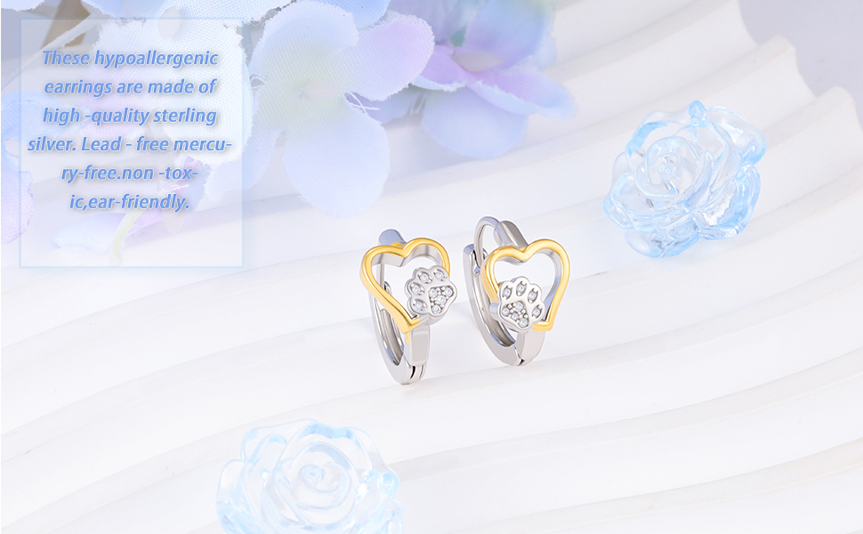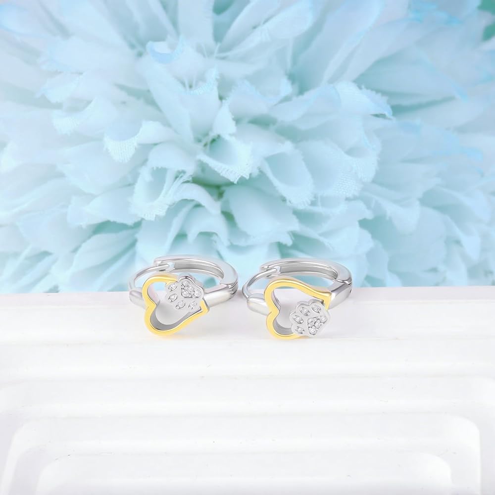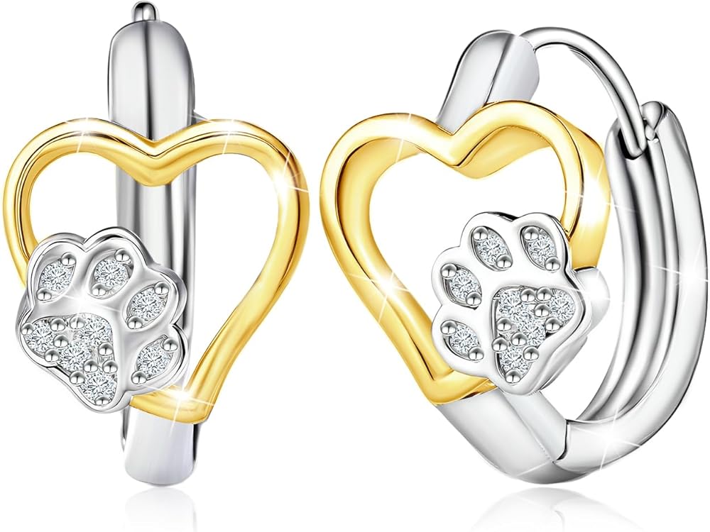تصميم أقراط على شكل قلب ومخلب: تتميز هذه الأقراط بمزيج جميل من طباعة القلب والمخالب، مثالية لمحبي الحيوانات الأليفة. يضيف التصميم ذو اللونين (فضي + ذهبي) لمسة عصرية أنيقة ترمز إلى حب الأصدقاء ذوي الفراء.