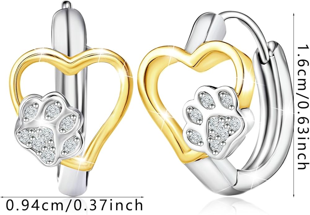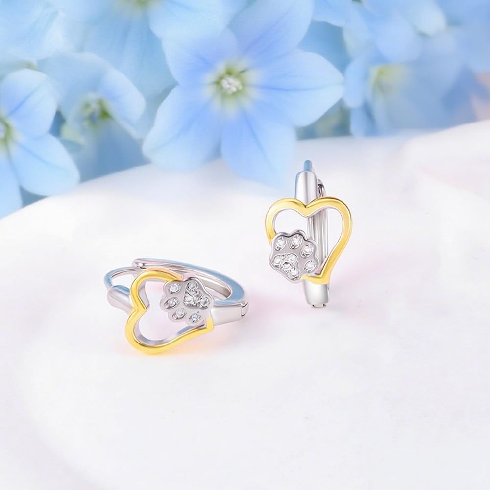 أقراط من الفضة الإسترليني بدرجتين من اللون على شكل قلب مطبوع عليها مخالب للنساء، مكعب زركونيا متلألئ خفيف الوزن من تشيكوسلوفاكيا للحيوانات الأليفة والجرو والكلب والقطط، حلق حيوان لطيف هدية عصرية لحبيبتها للحيوانات الأليفة وحفيدتها
