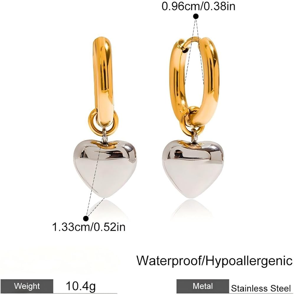 أقراط على شكل قلب معدني مضادة للحساسية للنساء، أقراط دائرية عتيقة من الفولاذ المقاوم للصدأ مطلية بالذهب عيار 18 قيراطًا من الذهب والفضة، مجوهرات بسيطة خفيفة الوزن، هدايا عيد الفصح لها