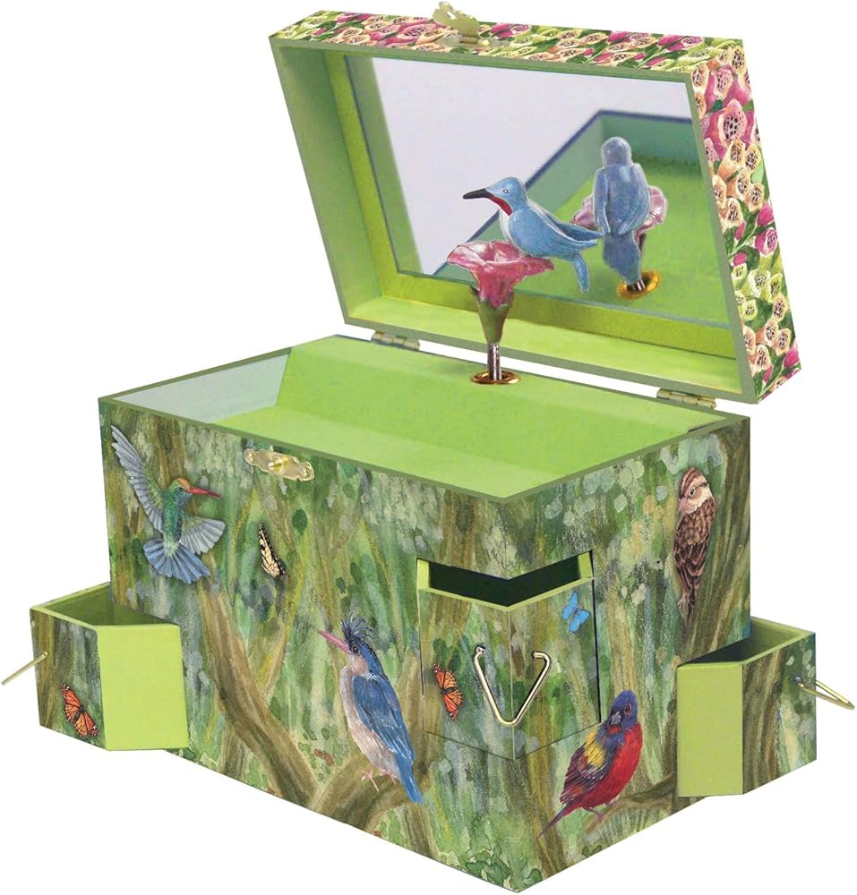 🐦 PERFECT DECOR ADDITION: Our stylish jewelry box is a perfect addition to a collection of nature toys, or can simply add to the ambiance of any room. It is a fun-inspiring piece of decor to add to a dresser, nightstand, or vanity. This whimsical item will fill any room with music, imagination, memories - and a little bit of magic.