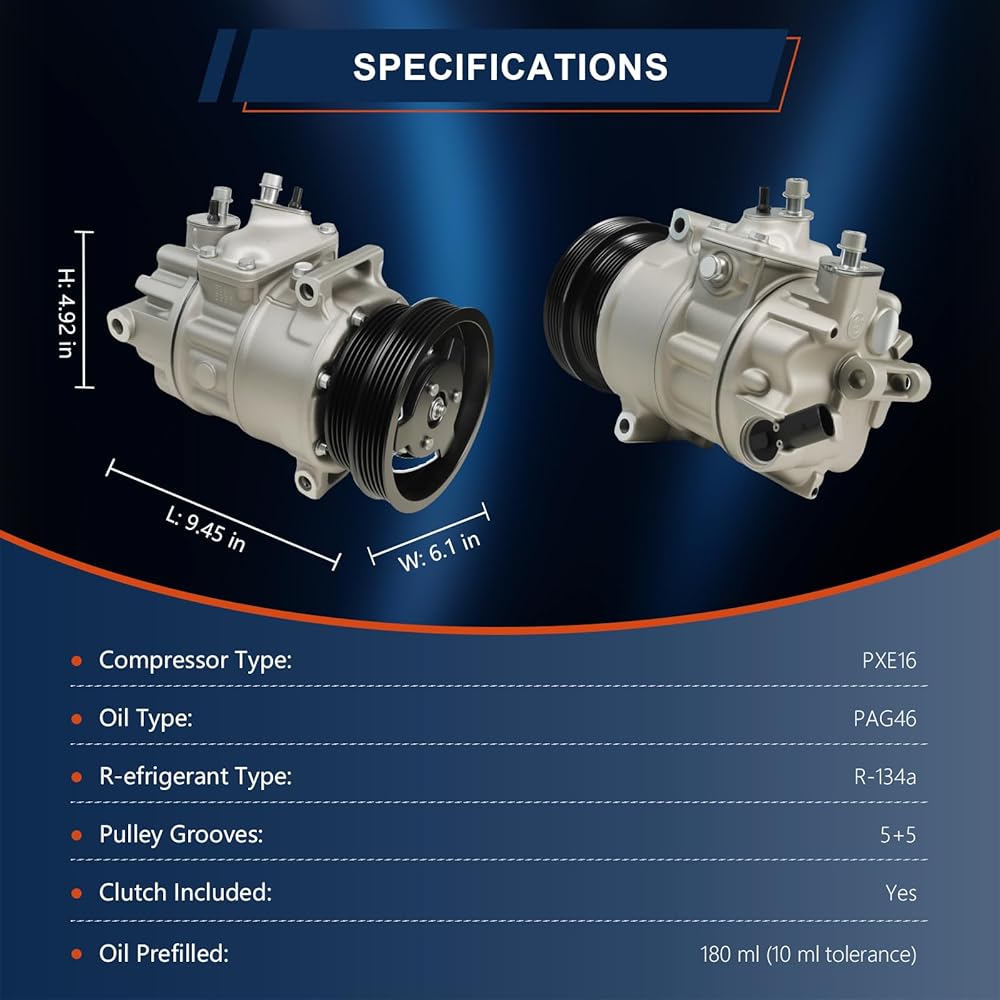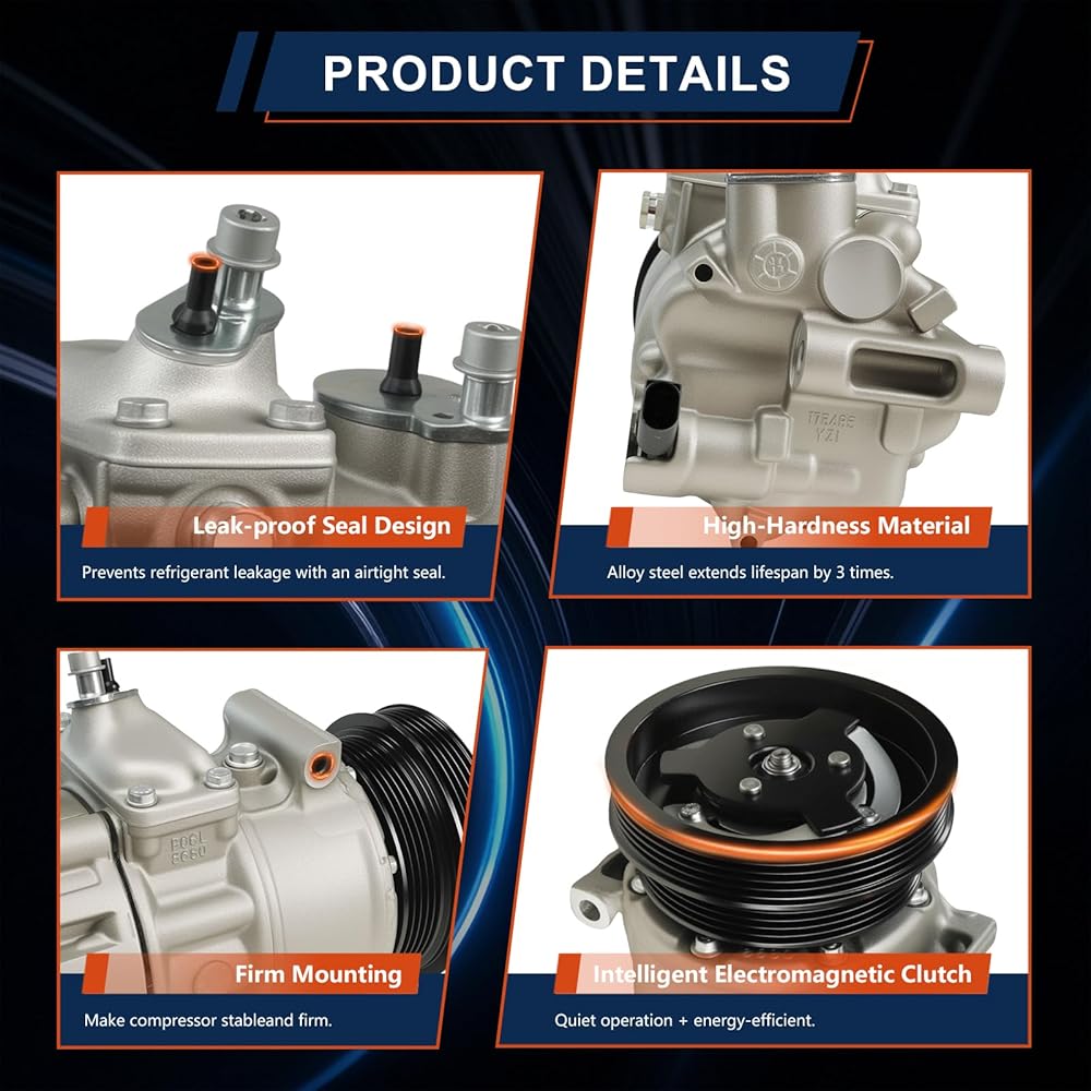 [فعال في استخدام الطاقة ومتين]: مصنوع من سبائك الألومنيوم عالية القوة، يعمل هذا الضاغط بأقل قدر من الضوضاء والاهتزاز من أجل تبريد موفر للطاقة. حافظ على سرعة قيادة ثابتة لتحسين كفاءة استهلاك الوقود. ويضمن هيكلها القوي أداءً موثوقًا ومتانة ممتدة.