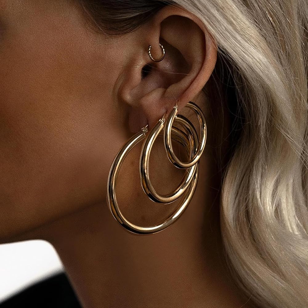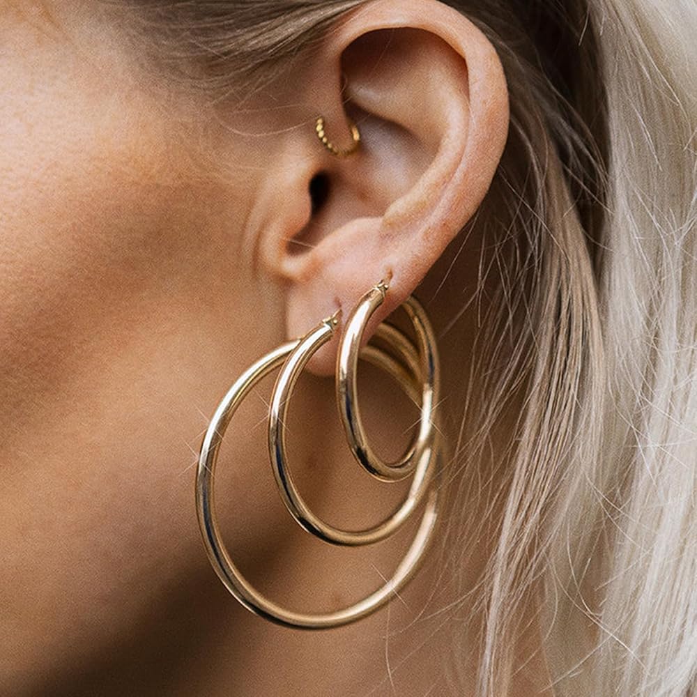 Multiple Sizes: Provides 4 sizes of 30mm/40mm/50mm/60mm, which can be combined and matched to wear on different parts of the ear. It adopts a safe and strong top buckle and puncture design. It is very easy and comfortable to put on/take off.