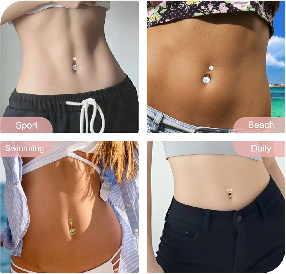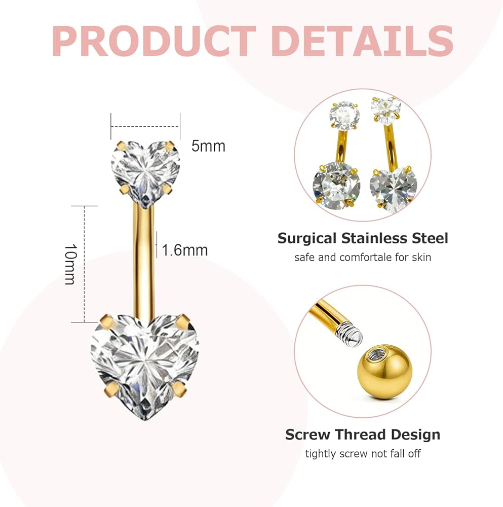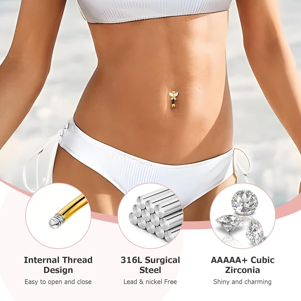 【Universal 14G Standard Size for Easy Wear】 Designed with the popular 14 gauge (1.6mm thickness) and a 10mm bar length, these belly rings offer a secure and comfortable fit for most adults. The internally threaded or screw-on balls ensure easy insertion and a smooth finish.