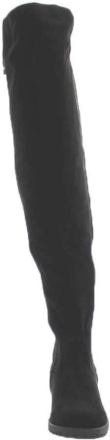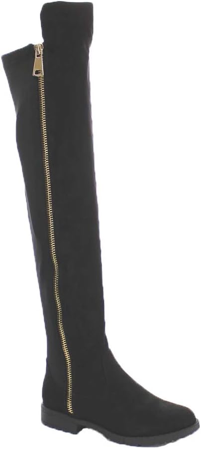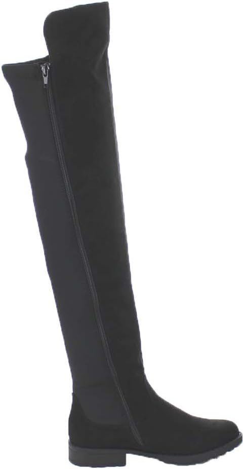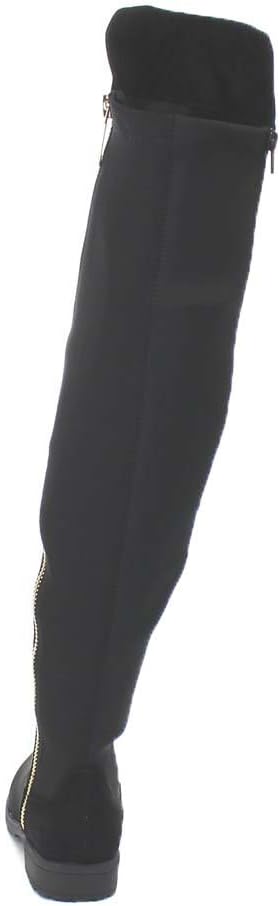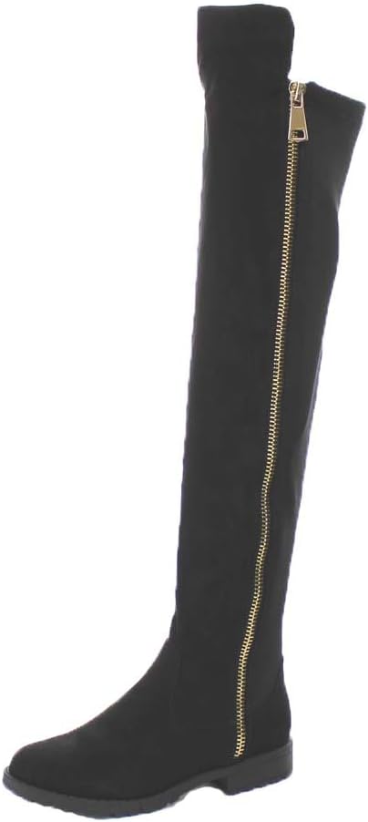 حذاء نسائي من Bamboo Monterey-05 بسحاب جانبي قابل للتمدد وكعب منخفض فوق الركبة، جلد سويدي أسود، 9