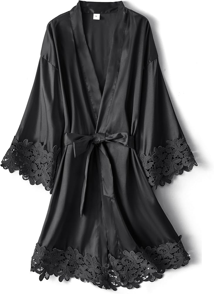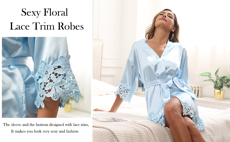 أردية مثيرة مزخرفة بالدانتيل على شكل زهور: الأكمام والجزء السفلي مصممان بزخرفة من الدانتيل، مما يجعلك تبدين جذابة وعصرية للغاية. بأكمام قصيرة، طراز كيمونو، رقبة على شكل حرف V مثيرة، أربطة داخلية ووشاح خصر قابل للإزالة للحفاظ على إغلاقه وتعديله ليناسب المقاس الرائع