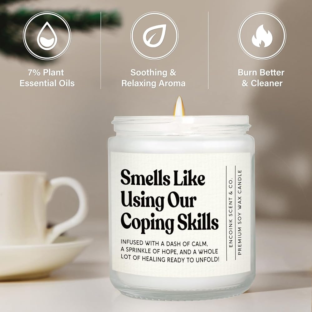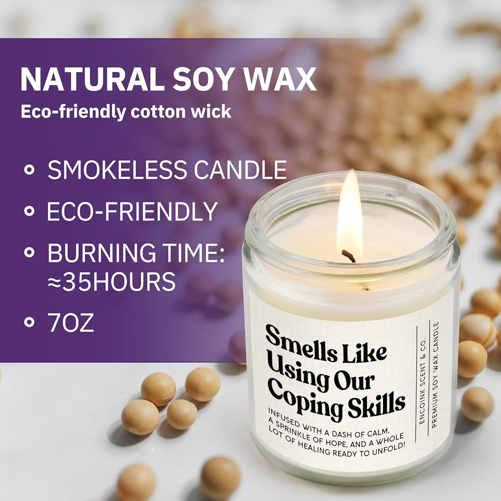 Gifts for Therapists & Mental Health Professionals: This scented candle features the witty phrase, “Smells like using our coping skills”, making it an ideal gift for therapists, counselors, social workers, shool psychologists, or psychology graduates. Suitable for Christmas, Thanksgiving, Social Work Month, Counselor Appreciation Week, or Mental Health Awareness Month, it expresses sincere gratitude and respect, letting the warm candlelight honor their dedicated work