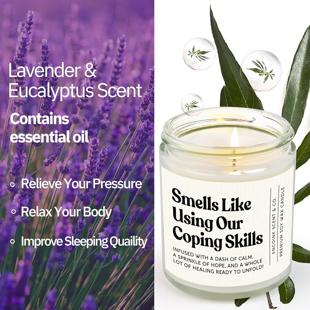 هدايا المعالج للنساء والرجال، هدايا لمستشار المدرسة، الأخصائي الاجتماعي، طبيب النفس، الصحة العقلية، شمعة مهارات التأقلم المضحكة لتخفيف التوتر، والشفاء، واللافندر