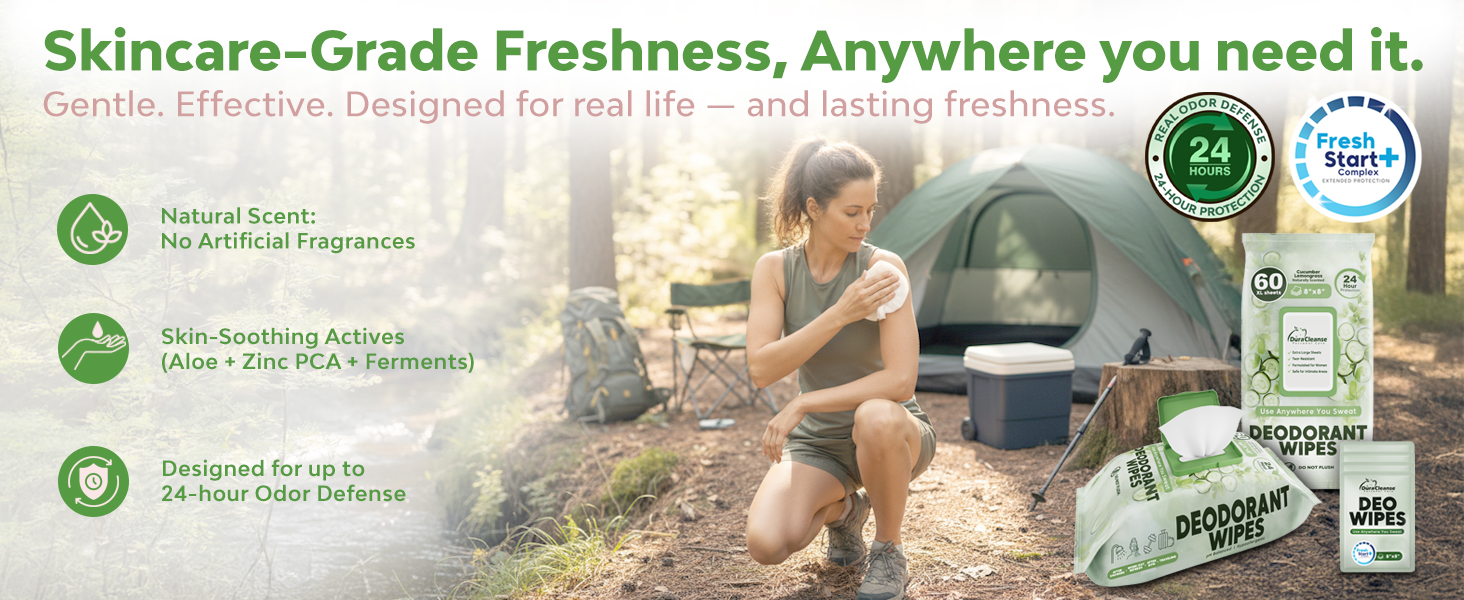 الثقة أثناء التنقل: مثالية بعد التمرينات أو الأيام الحارة أو التنقلات المزدحمة. تعمل هذه المناديل المبللة على تجديد منطقة الإبطين والجسم حتى تشعر بالنظافة والثقة أينما كنت.