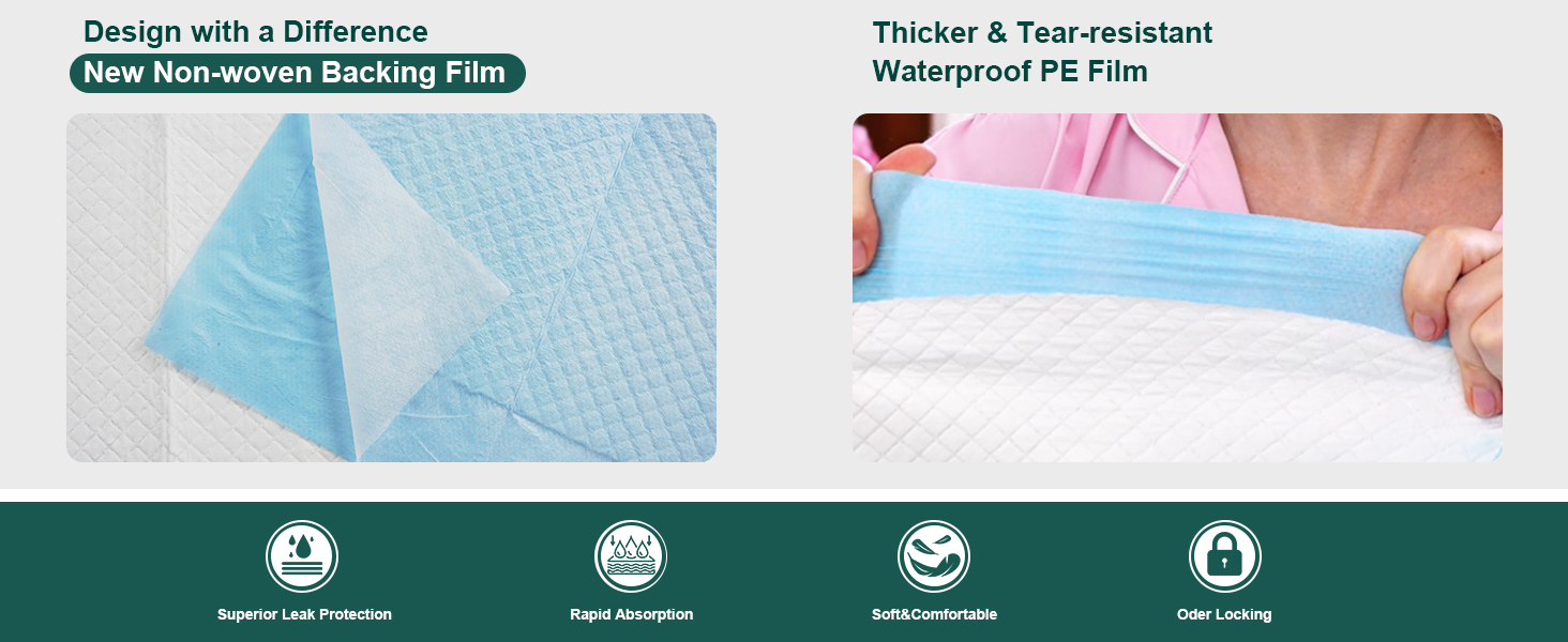 اختيار مثالي: 100% خالية من اللاتكس، الطبقة العلوية ناعمة الملمس لمزيد من الراحة. تحتوي الطبقة الوسطى على زغب سميك ماص مع بوليمر هلامي لامتصاص السائل وحبسه واحتوائه مما يساعد على الشعور بالجفاف أثناء مكافحة الروائح. يمكن أن توفر وسائد أسرة المستشفى الخاصة بنا حاجزًا مقاومًا للتسرب، وهو نظيف وسري وصحي لتقديم رعاية كريمة.