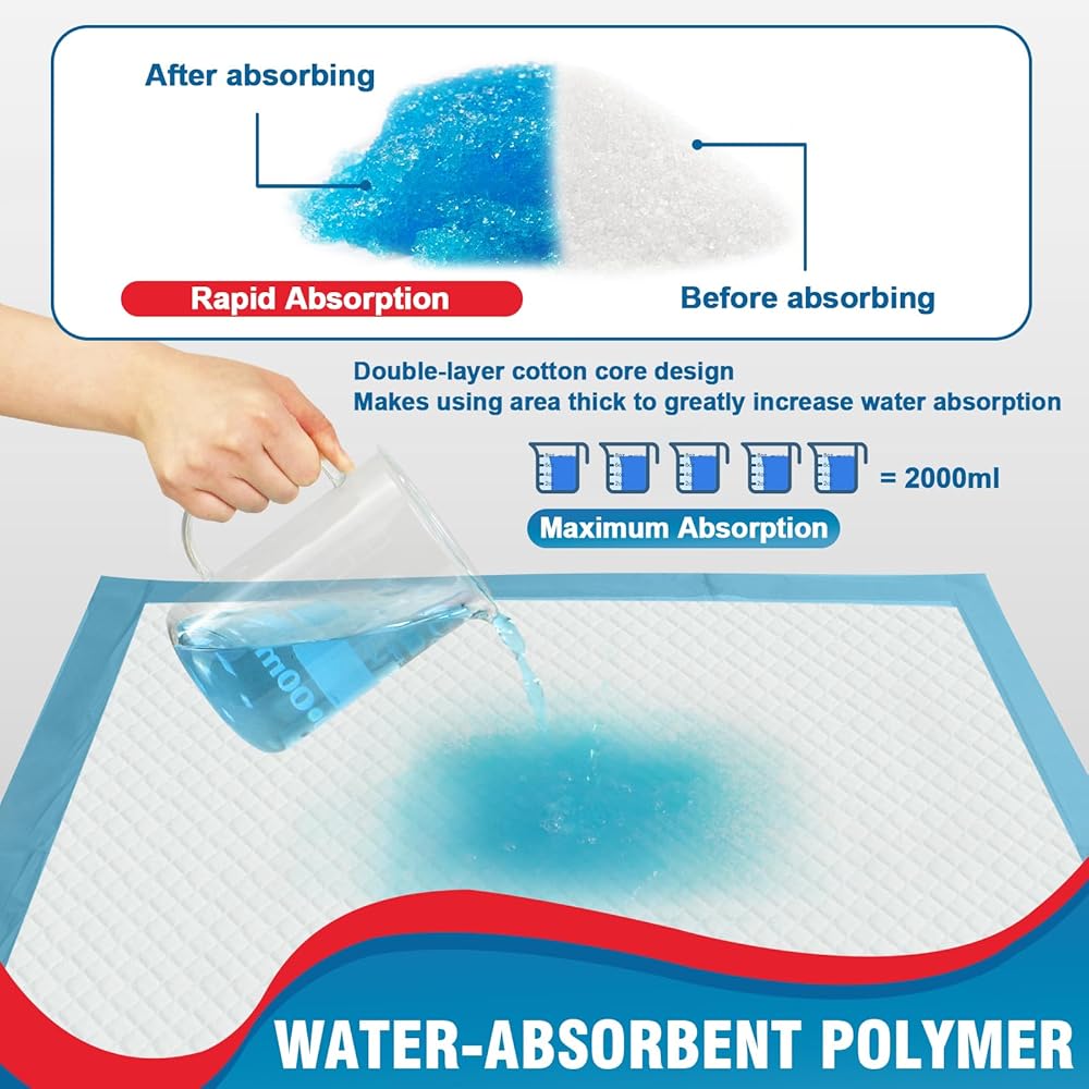 أكبر من أي وقت مضى - 36 × 40 بوصة: وسائد سرير للبالغين يمكن التخلص منها بقياس 3 × 3.28 قدم (حوالي 91 × 100 سم)، وسائد التبول الخاصة بنا للبالغين تزن 130 جرامًا وتوفر مساحة سطح كبيرة جدًا، وهي ماصة للغاية مع أداء يتجاوز بشكل كبير التشكس التقليدي، وتوفر أقصى قدر من التغطية والحماية للمرتبة والأرضيات والمزيد.