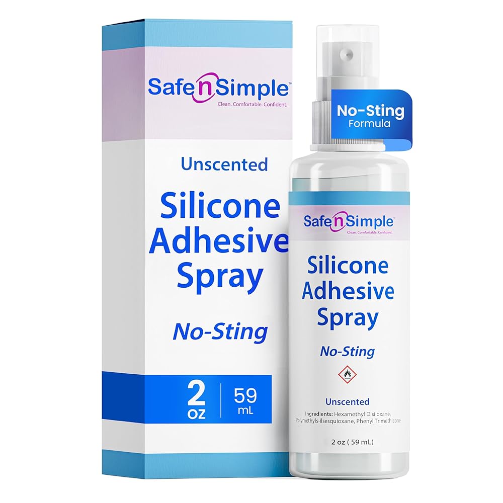 بخاخ لاصق طبي من السيليكون من سيف آند سيمبل - زجاجة بحجم 2 أونصة - بخاخ لاصق للبشرة لا يسبب اللدغة وغراء طبي للجلد لمستلزمات الفغرة، وفغرة القولون اللفائفية، وملحق حقيبة فغرة البول، مقاوم للماء وخالي من الروائح