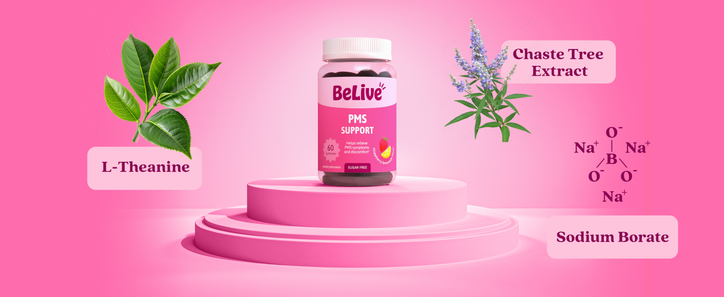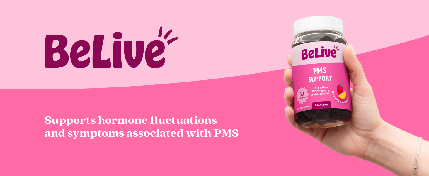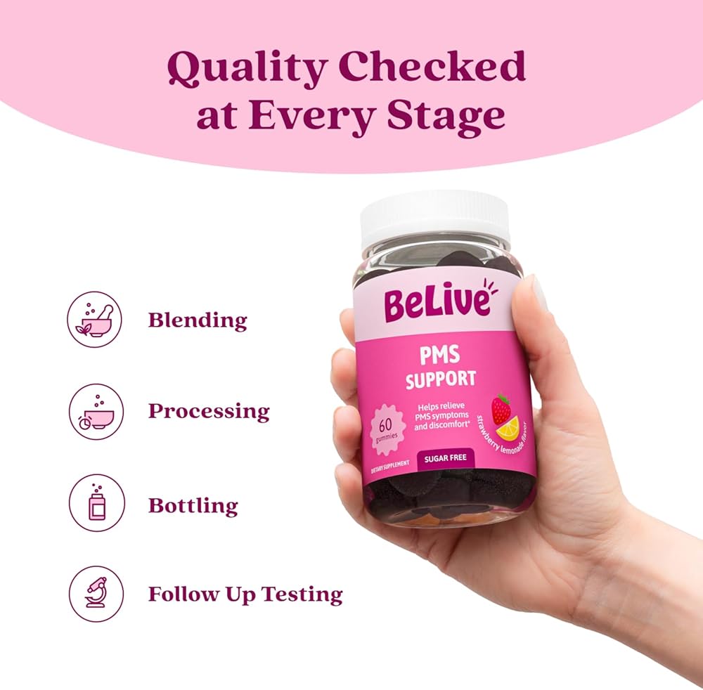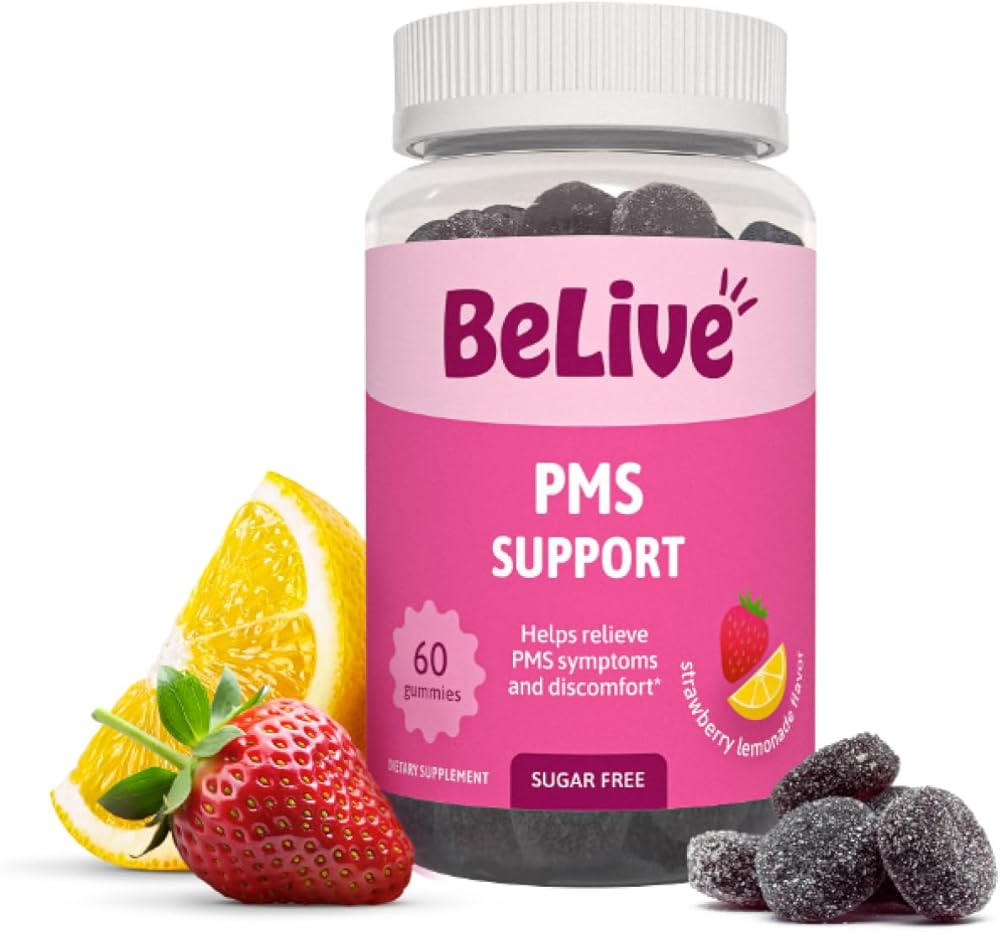 مكمل دعم اللثة من BeLive PMS - يساعد على تخفيف أعراض الدورة الشهرية - التوازن الهرموني وتقلبات المزاج والتشنجات، ودعم الانتفاخ - مع مستخلص شجرة العفة - نكهة عصير الليمون بالفراولة - 60 قطعة